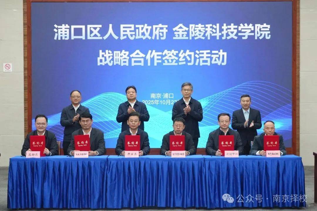 浦口区与金陵科技学院签约合作,聚焦产业链创新链融合,深化人才科技协同,打造研产贯通生态。