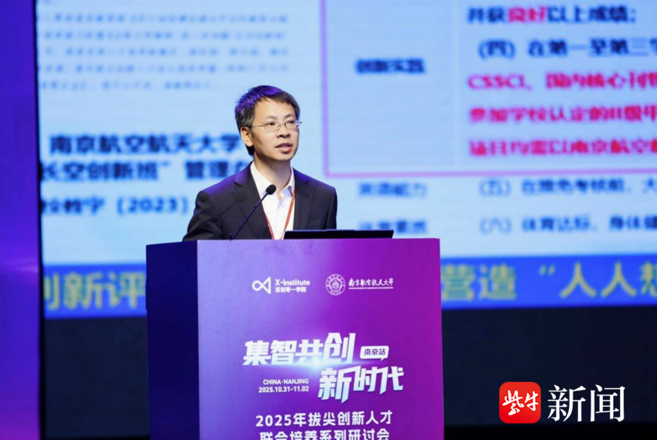 10月31日至11月2日,由深圳零一学院主办、南京航空航天大学承办的2025年拔尖创新人才联合培养系列研讨会在将军路校区艺术中心小剧场举办。中国科学院院士、深圳零一学院创始院长郑泉水,深圳零一学院联席院长、清华大学原副校长郑力(线上),河海大学副校长沈扬,江苏省教育厅江苏卓越国际交流教育基金会项目主管邹彦玲,校长姜斌,以及来自清华大学、上海交通大学、浙江大学等40所高校的领导、专家学者及师生代表参会。