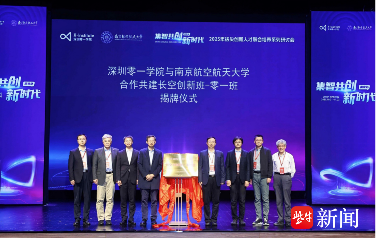 郑泉水与姜斌共同为“长空创新班-零一班”揭牌,深圳零一学院联合创始人徐芦平、清华大学陈民、任建勋及南航长空学院院长朱建军、首席导师熊克共同见证,标志双方联合培养迈入新阶段。
