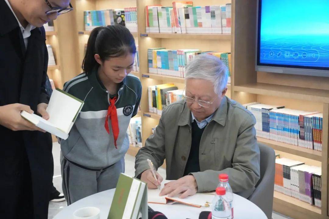 讲座后,金陵河西学校高中部2018届校友沈骏杰作现场分享。他高中选修的是物理化学,大一修的也是化学,大二时以转系考试第一名的成绩转入了中文系,硕士研究的是甲骨文。他以自己的跨界经历为莫教授的“文理兼容”观点提供了生动的佐证。
