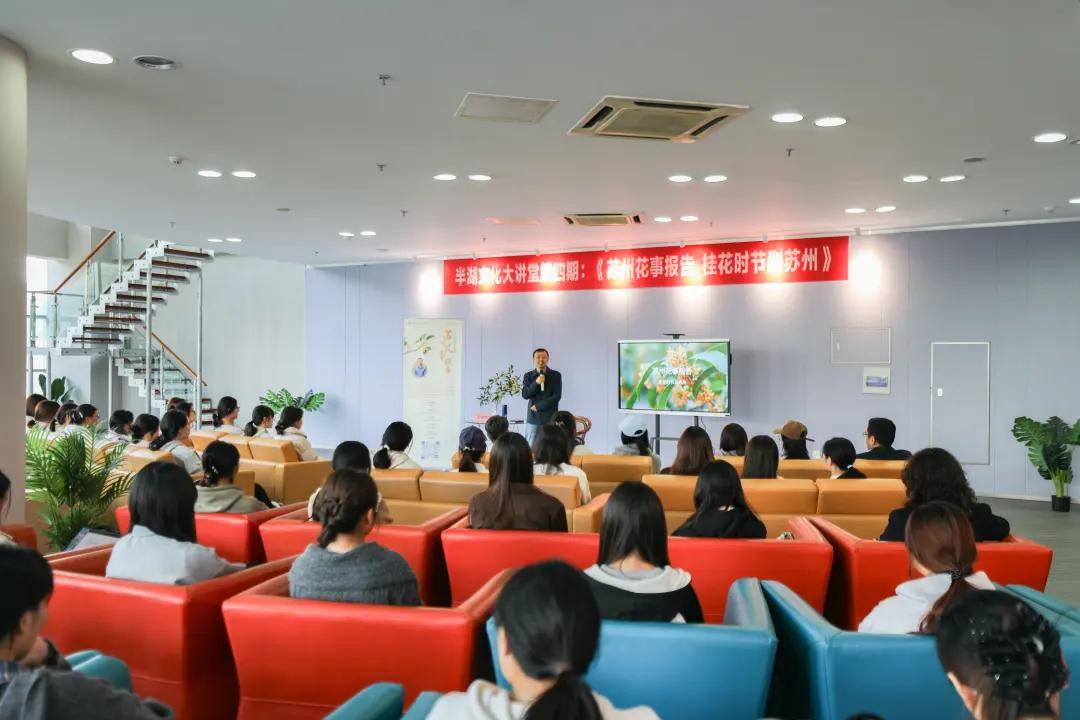 近日,苏州经贸职业技术学院开展文化大讲堂。活动邀请专家走进校园,系统讲解桂花品种辨识、苏州传统桂文化及食俗应用等内容,结合苏州方言“木樨花”称谓溯源其文化基因,并通过光福窑廊梅泥桂花制作演示展现非遗技艺。现场师生共同参与糖桂花制作实践,在选花、去杂、制糖等环节体悟传统工艺精髓。本次活动通过科普教育与实践体验相结合的方式,引导青年学子感受桂花承载的江南文脉与匠心精神,成为弘扬中华优秀传统文化的生动课堂。