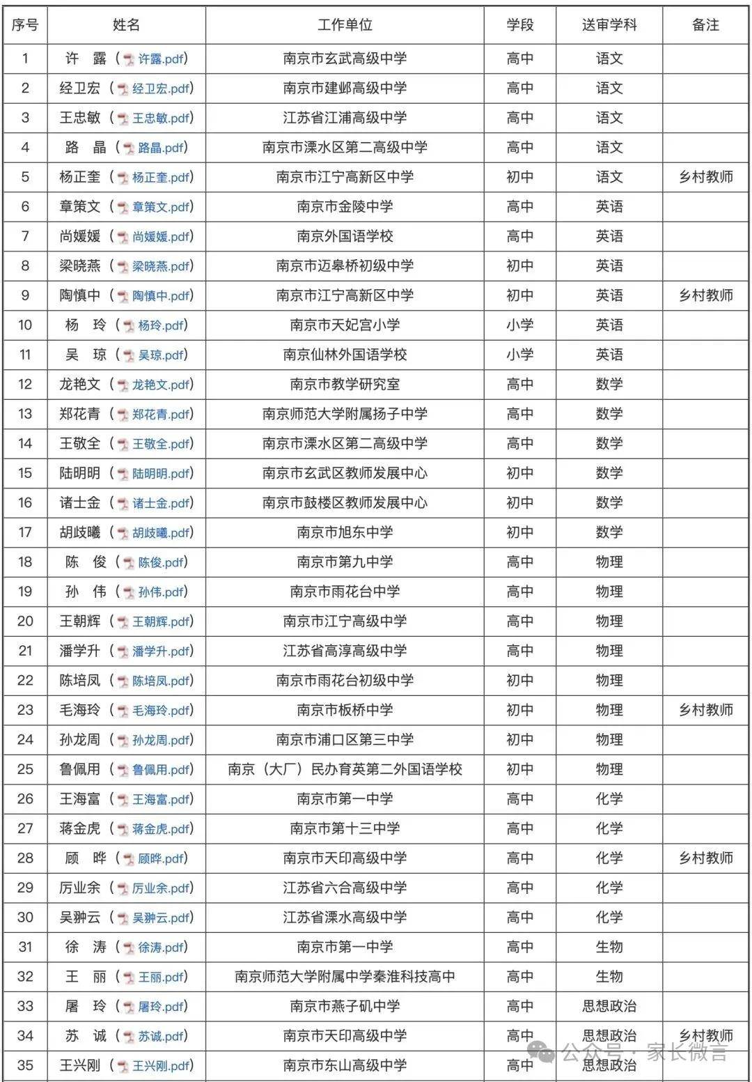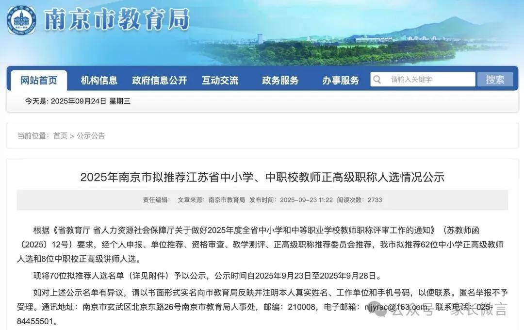 南京市拟推荐2025年省中小学中职校正高级职称人选