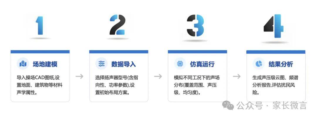 首次采用“量化仿真设计”理念。项目团队将操场视为专业声学场所,对每所学校进行三维建模,并导入国际权威的EASE声学仿真软件,通过模拟预判工程效果,实现“设计即达标”。这一创新方法,不仅让设计的精准性大幅提升,使整体噪声控制能力提高五倍以上,还有效减少了约60%的现场调试工作量。