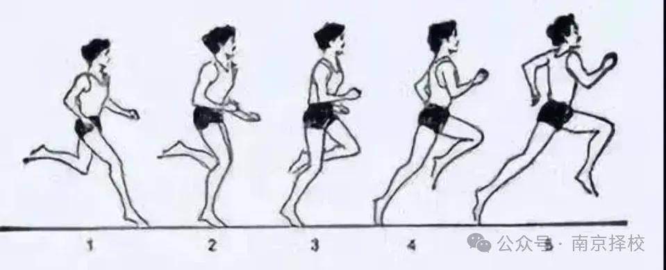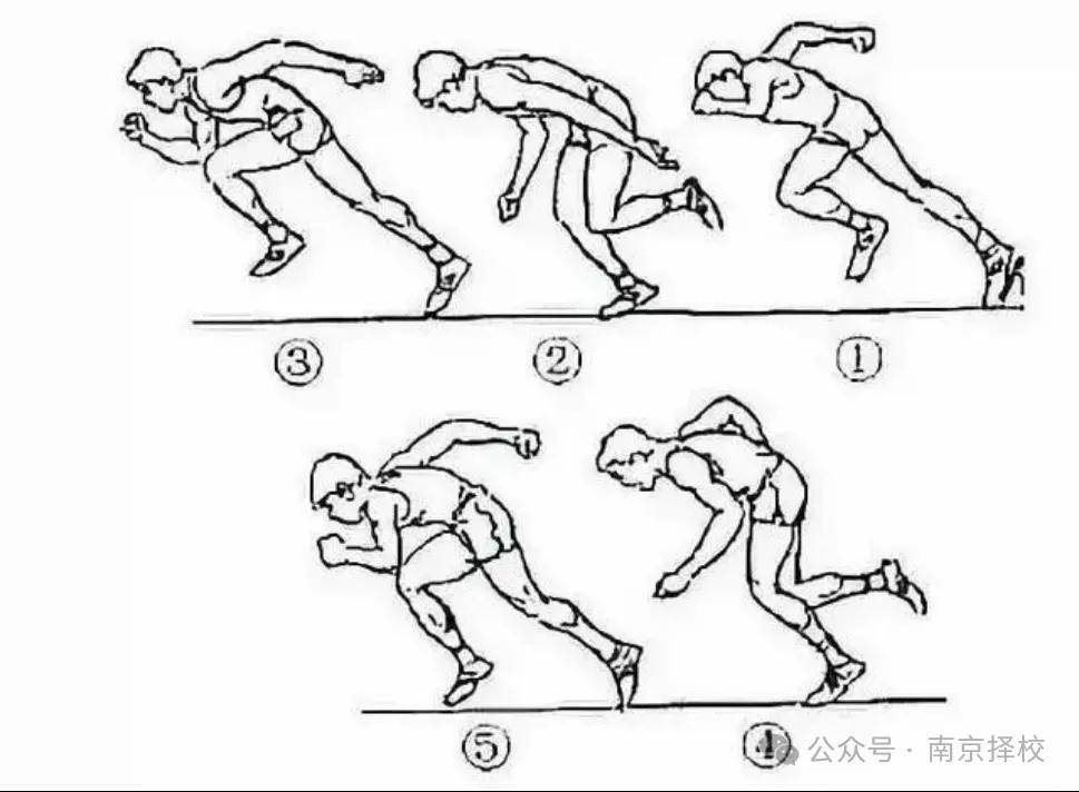 起跑后第一步落地不停顿,后蹬要用力,摆动腿积极前摆下压。前脚掌撑地,两臂配合双腿快速地前后摆动。