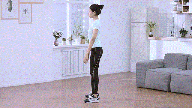 1.双腿伸直并拢,脚底踩实测试板,脚尖微微分开。