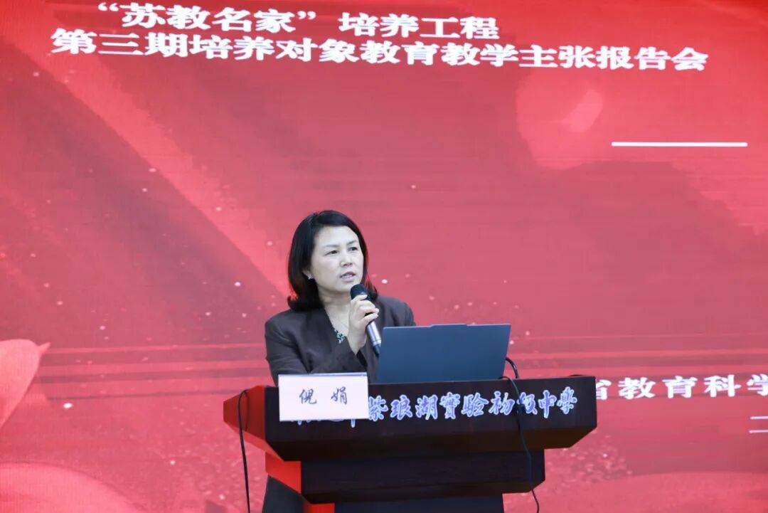 倪娟讲话指出,教育教学主张报告会是“苏教名家”培养工程的重要环节,也是关键的育人路径,既为培养对象搭建了交流展示的平台,更是对培养成果的一次阶段性检阅。她强调,教育教学主张应根植于教育教学实践积淀,但不止于对实践经验的简单总结,要聚焦教育改革发展的重点难点问题,探索构建体系化的育人模式和学理化表达。她期望,南通教育扎实推进“苏教名家”培养工程的各项任务,进一步构建“苏教名家”培养工程与“1115”培养工程贯通培养机制,充分发挥“苏教名家”培养对象的引领带动作用,努力培养和造就更多名师名家,为全省教师队伍的高质量发展贡献南通力量。