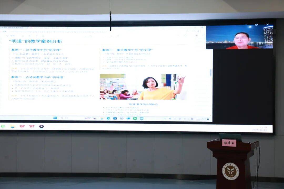 朱水平以《语文明道至美的内涵、特征与实践路径》为题,全面阐述了“语文明道至美”教学主张。她提出,该主张以中国哲学中的“道”的智慧为根基,融合西方学习科学及美育理论,兼顾语言之“道”和人文之“道”,要求科学化与审美化并重。围绕课程、教学、活动三个层面进行审美化建构,强调构建“至美课程”、追求教学过程的审美化改造、设计“至美实践活动”。 团队成员陈露、吴林飞、杨楠老师汇报美育实践与育人成果。