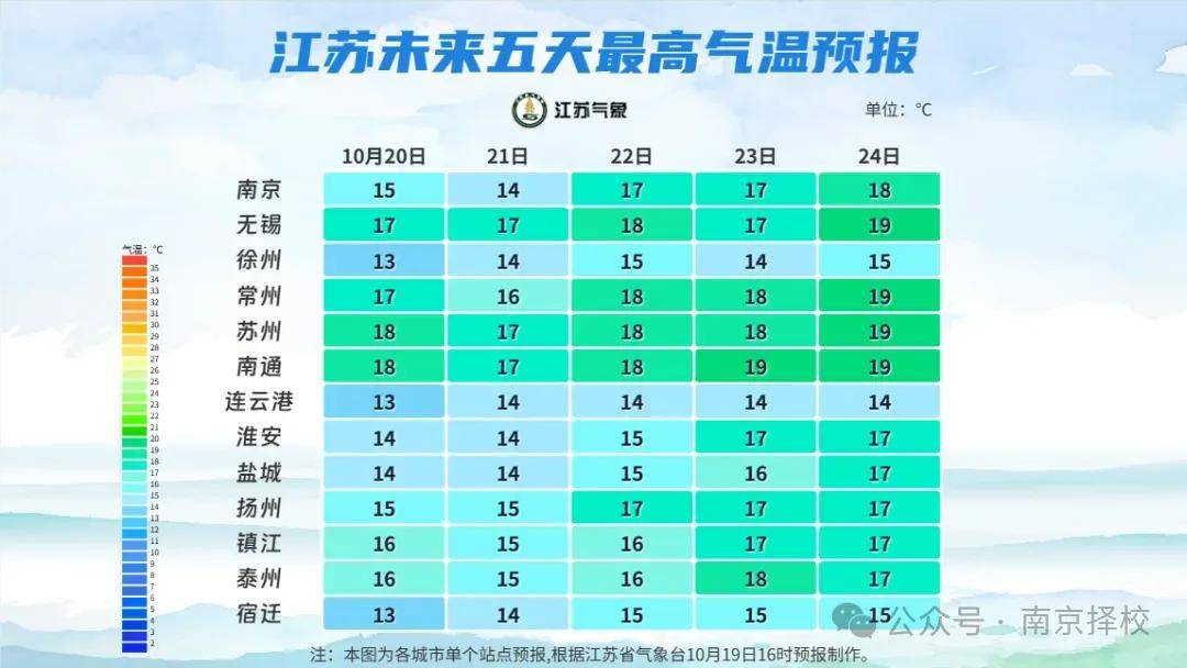 此外,受此次冷空气影响,未来三天,江苏省部分地区将陆续刷新最高气温新低。20日徐州、连云港和宿迁的最高气温都只有13℃,寒意日渐加重。预计20日到21日及25日江苏大部分地区仍有小雨,且20日到22日全省风力较大,需注意防范。