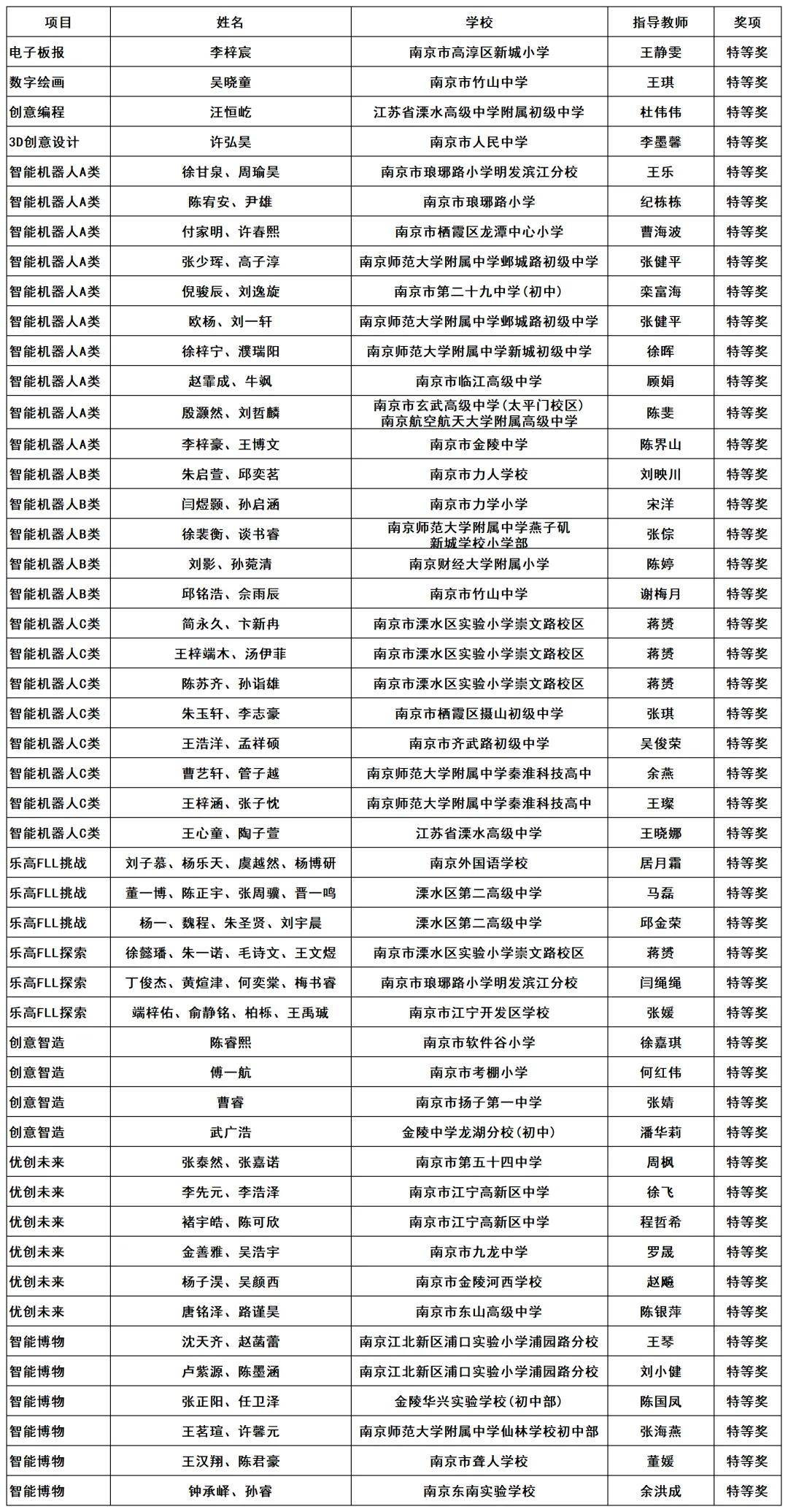 一起来看 特等奖 获奖名单