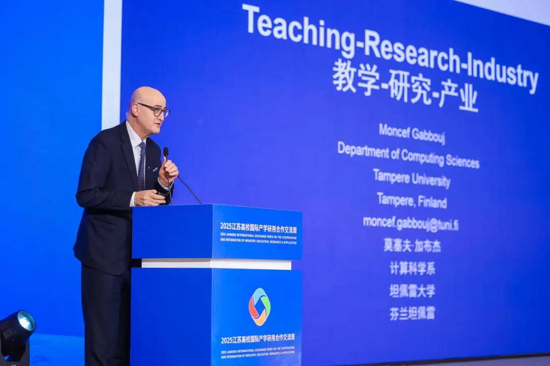 任友群在视频致辞中指出,党的二十届四中全会提出“要加强原始创新和关键核心技术攻关,推动科技创新和产业创新深度融合,一体推进教育科技人才发展,深入推进数字中国建设”,为推动产学研用深度融合、以高水平创新促进高质量发展指明了方向。本届国际产学研用合作交流周充分体现江苏产学研用工作特色,希望与会各方能够达成广泛的合作共识,携手共进、协同创新,大力促进各类科技成果落地转化,为区域发展注入强劲动力。他提出四点倡议:一是加强平台建设,深化合作伙伴关系;二是聚焦产业需求,加快发展范式转型;三是促进成果转化,释放合作互促红利;四是强化国际合作,推动全球创新发展。