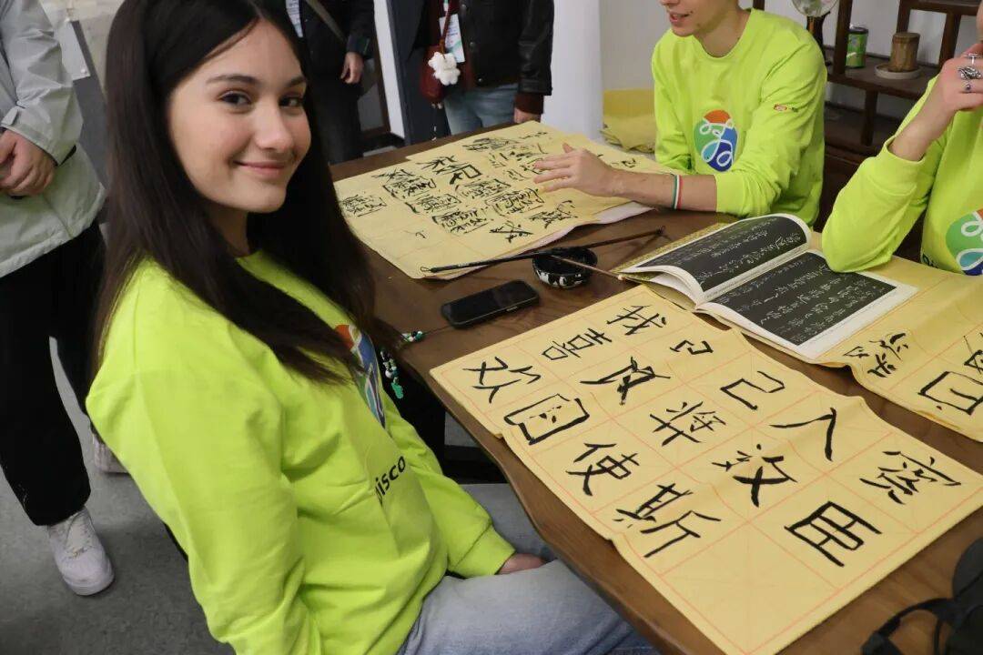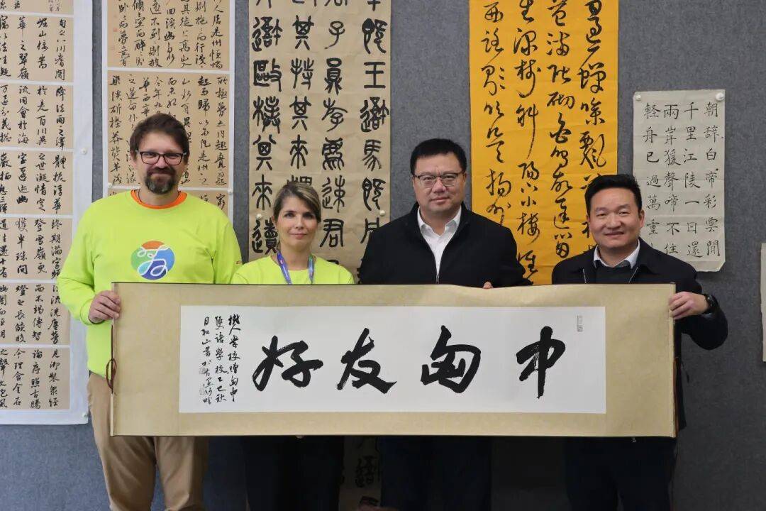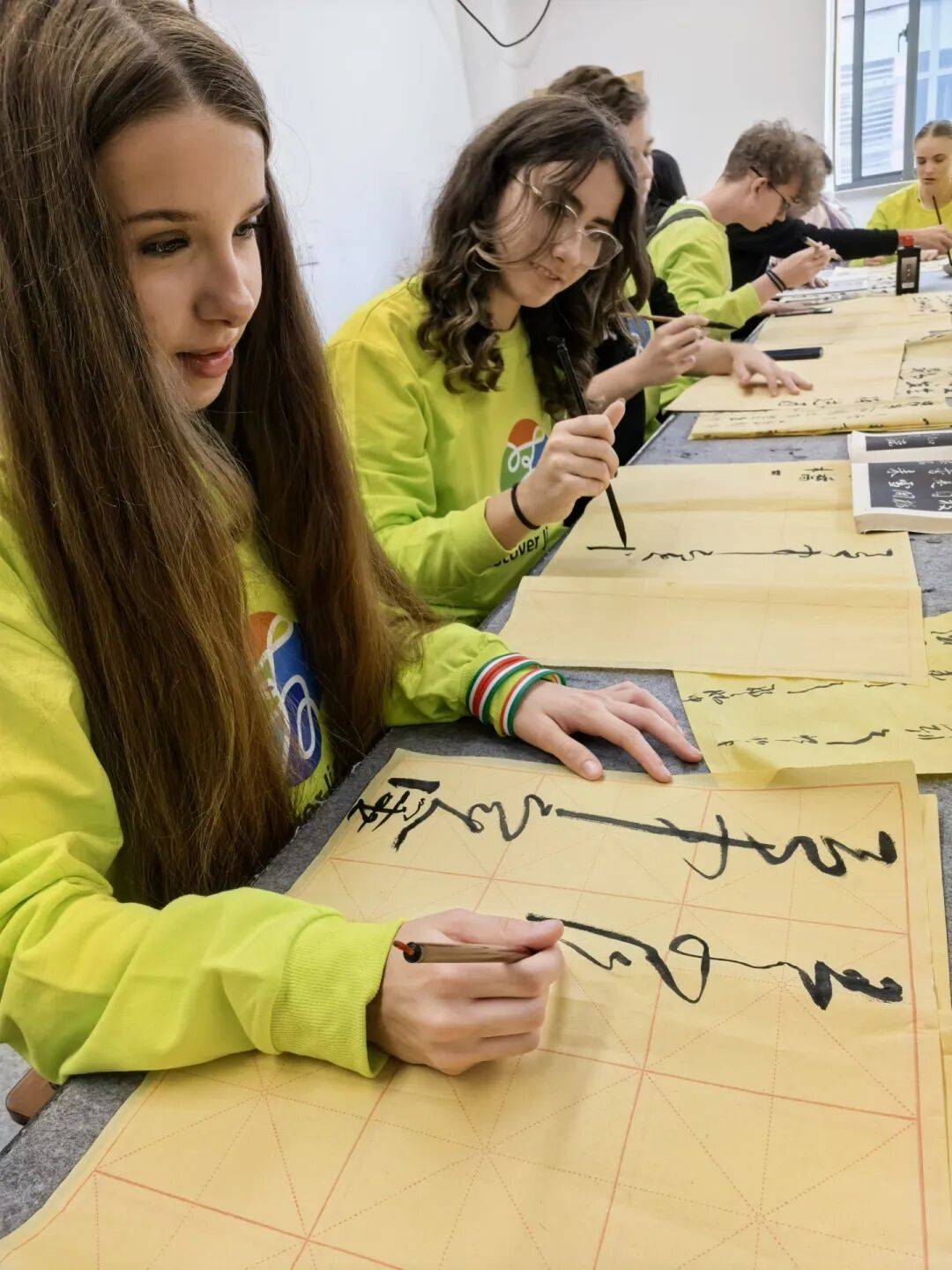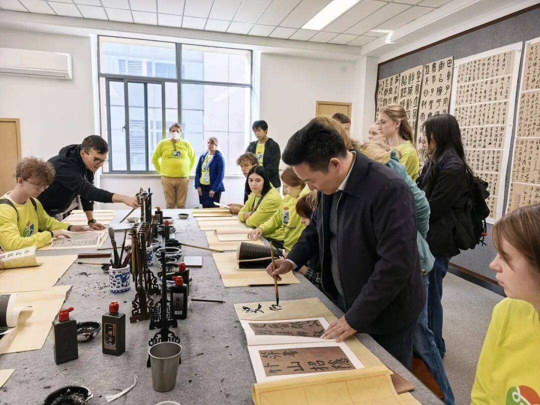 10月27日,匈牙利师生全天沉浸于校园生活。在尚美课程基地,他们体验书法课程,亲手书写汉字,感受笔墨韵味。树人学校向匈方赠送了“中匈友好”书法作品。此外,学生共同参与美术课、“华服小当家”手工,并在食堂合作包饺子、汤圆,在劳动中深化理解。