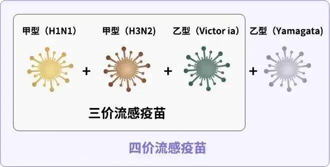 全球已上市的流感疫苗有灭活疫苗(包括裂解疫苗和亚单位疫苗)、减毒活疫苗和重组疫苗。根据疫苗所含组分,可分为三价和四价流感疫苗,与三价流感疫苗相比,四价流感疫苗毒株中增加了乙型流感的一个谱系。