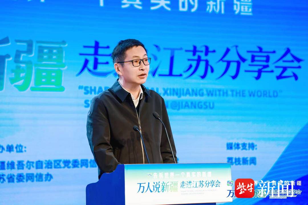 江苏省委网信办副主任赵明在致辞中指出,江苏作为首批对口支援省份,与新疆携手同心,在产业、文化、教育、医疗、人才等领域持续用力、久久为功,用实干与担当书写了东西部协作的时代答卷,两地干部群众也结下了深厚友谊。“万人说新疆”今年走进江苏,为深化两地交往交流交融按下“加速键”。他强调,要以“万人说新疆”为契机,砥砺团结奋进力量;以“万人说新疆”为平台,提升国际传播效能;以“万人说新疆”为桥梁,助力青年讲好故事。