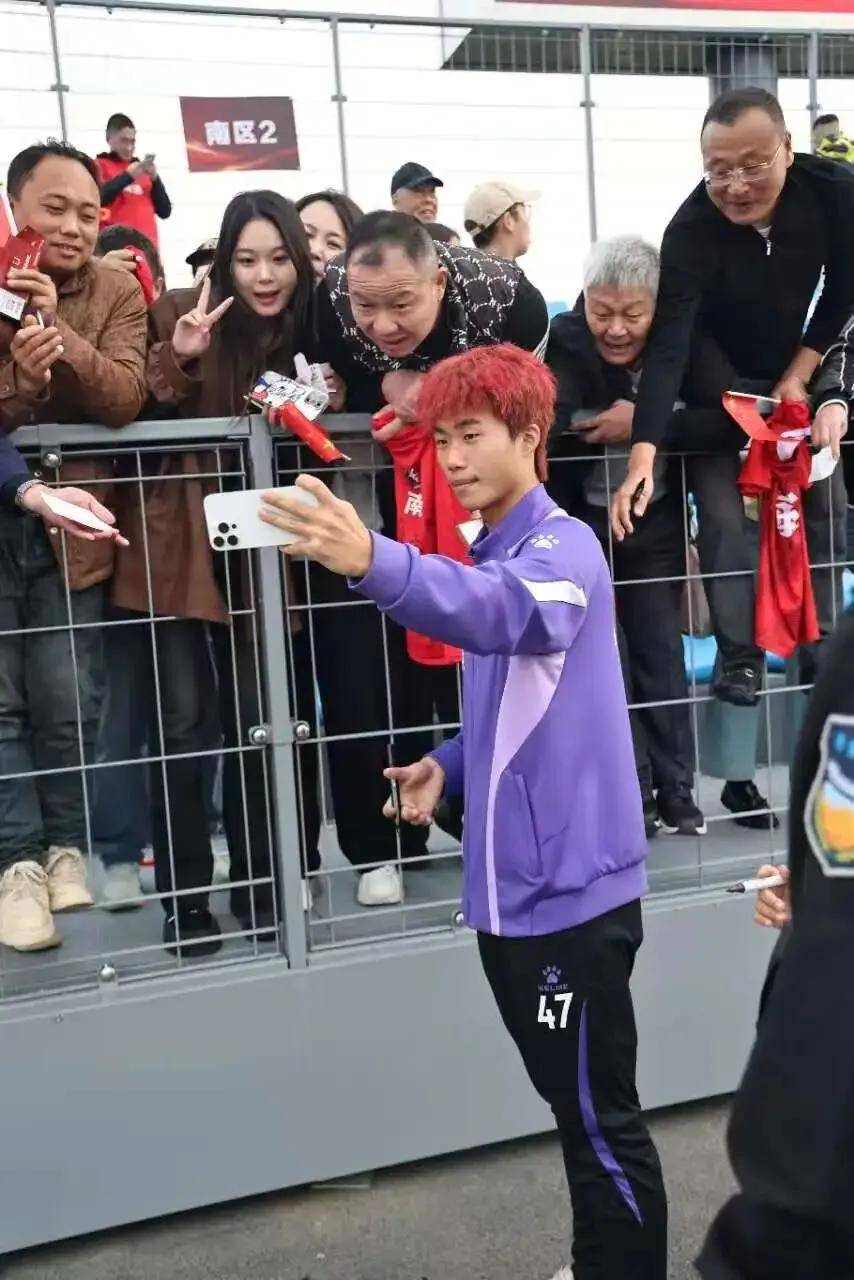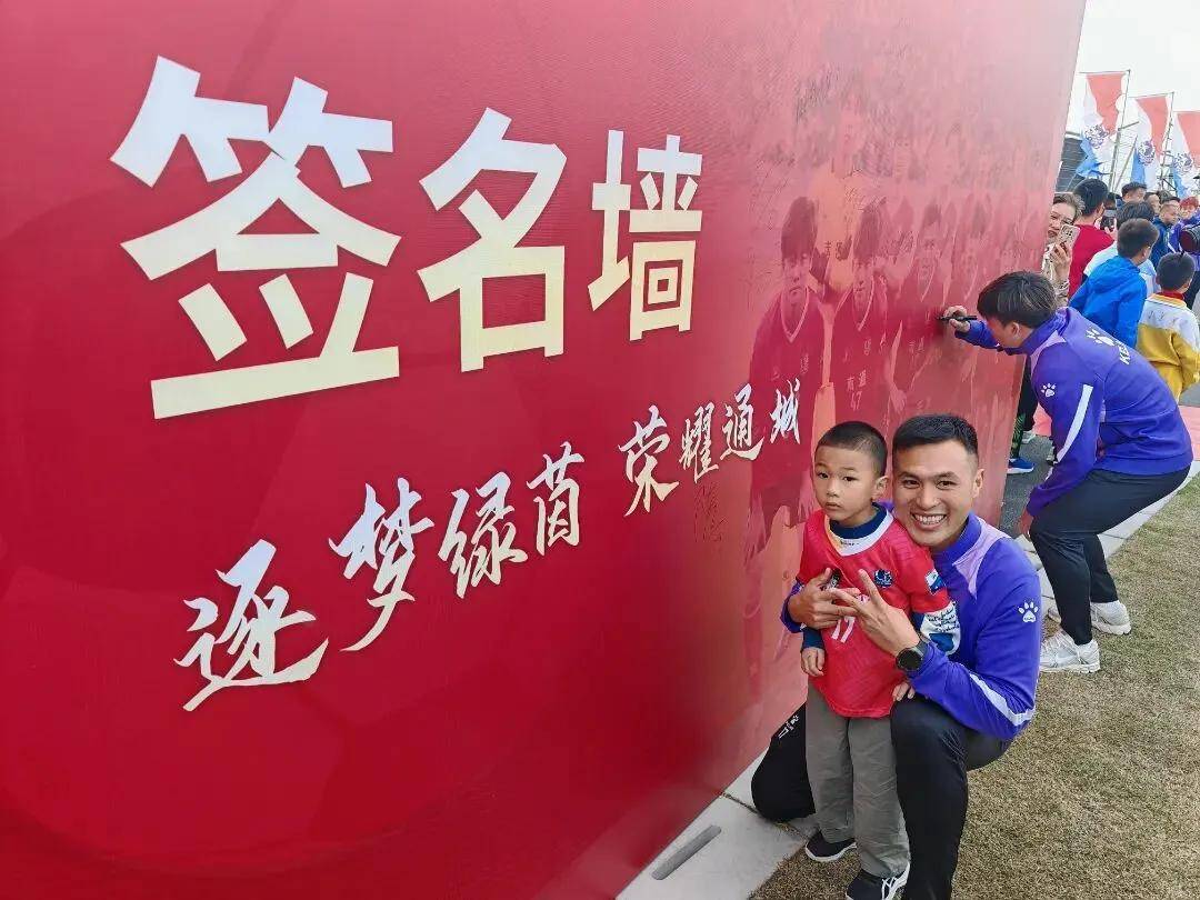 随后,南通队与球迷现场互动,大家纷纷亮出球衣,邀请队员们签名、合影。不少球迷还来到绿茵场,与队员互动点球颠球传球等。