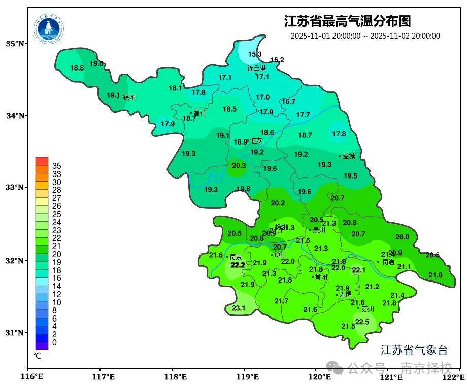 今南京多云,最高20℃,明起降温至16-17℃,最低8-9℃。短期后气温回升。