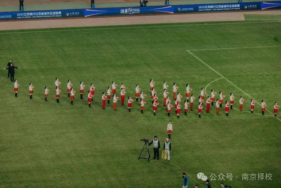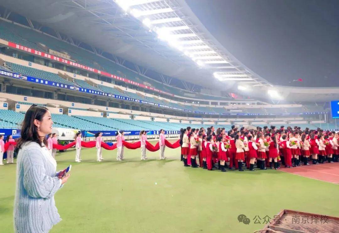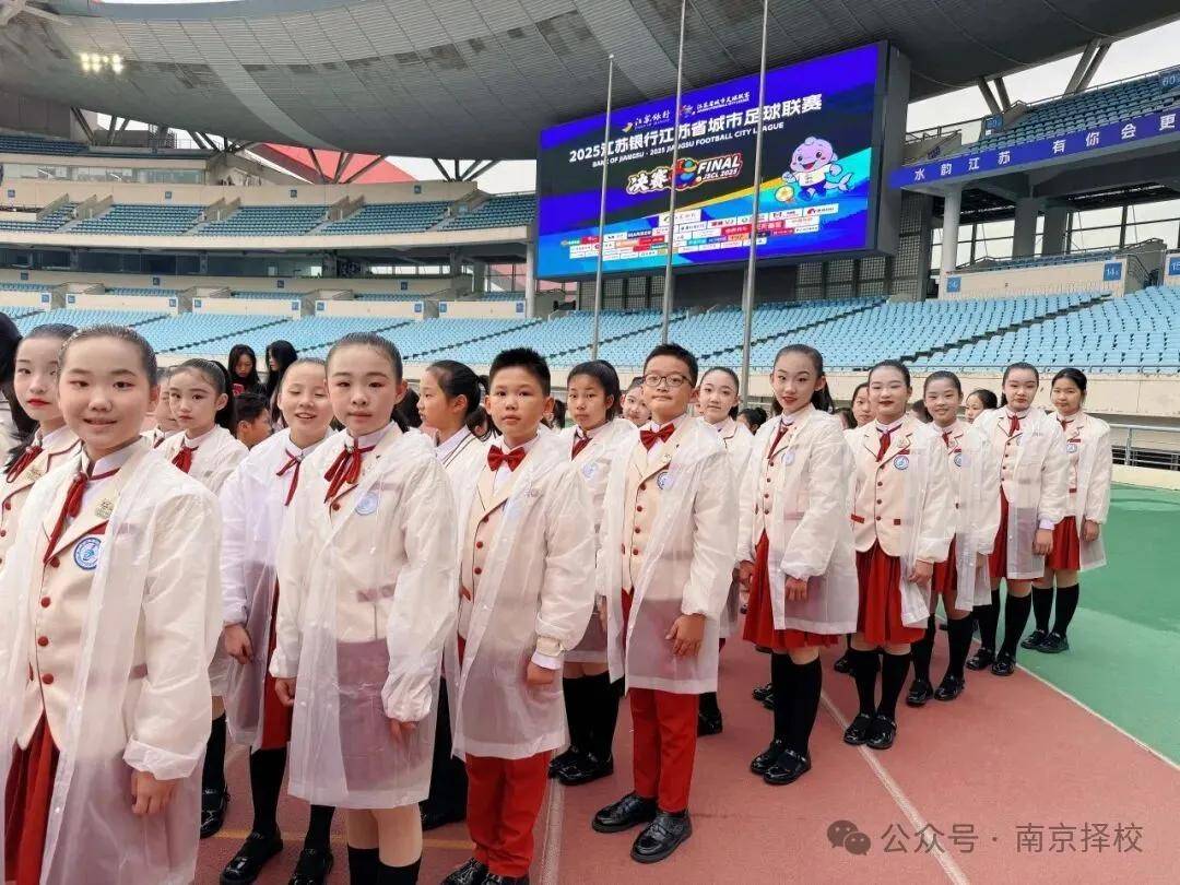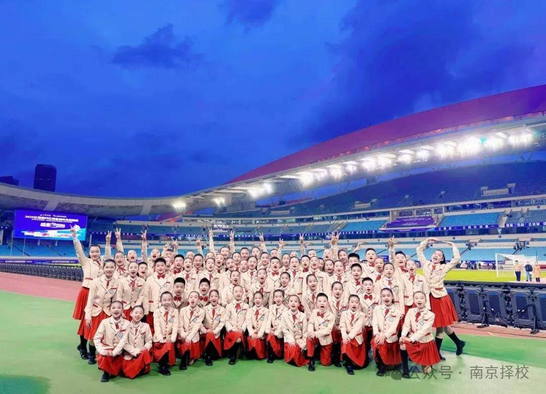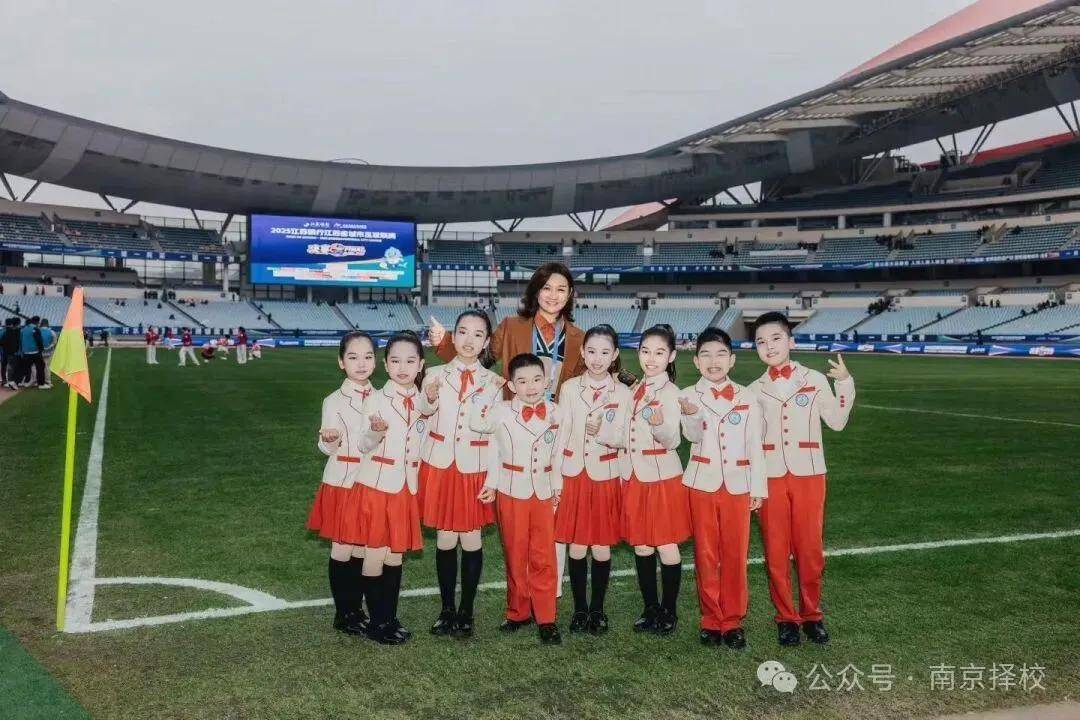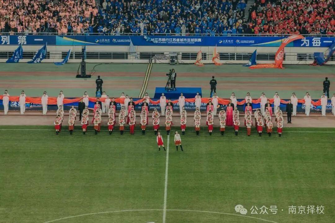在江苏省苏超总决赛的激烈角逐之际,一场温暖而铿锵的候场秀表演点亮了整个赛场。来自南京市鼓楼区天正小学天正童声合唱团的67名团员在谢婷老师带领下,身着团服站在万众瞩目的赛场上,伴随陈洛萱同学的领唱,以清澈而充满力量的合唱深情演绎《我和我的祖国》,为这场体育盛会注入了感人至深的文化内涵与精神共鸣。