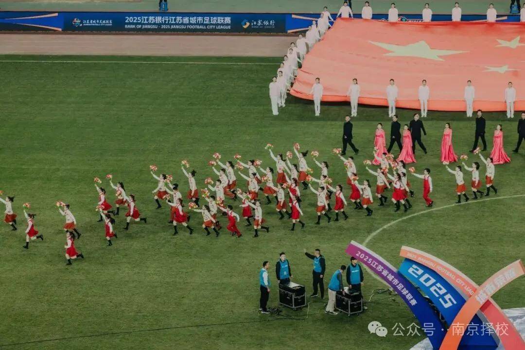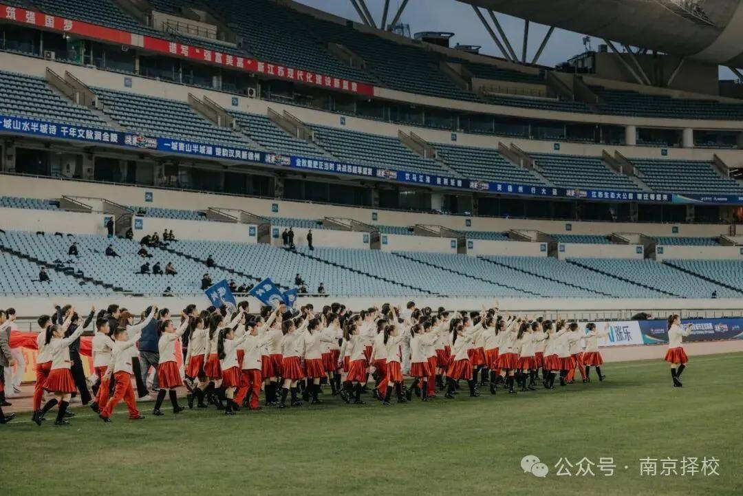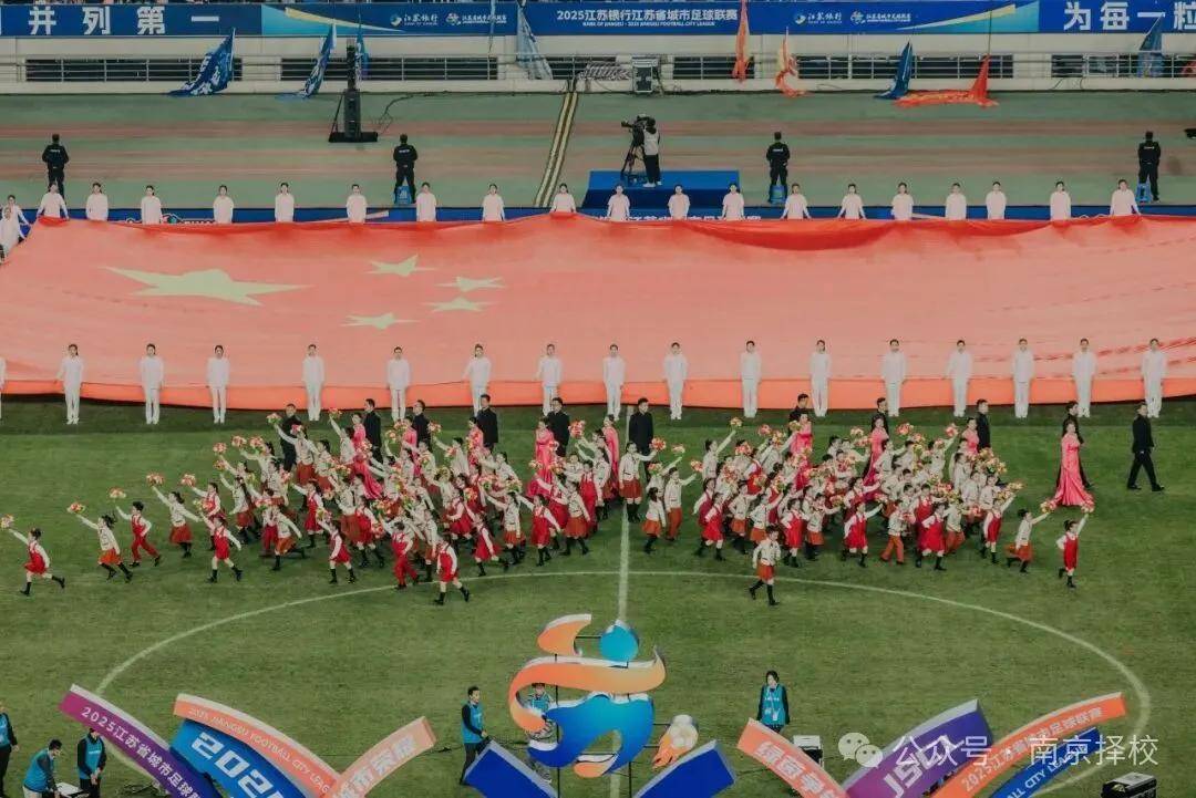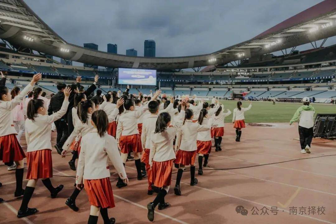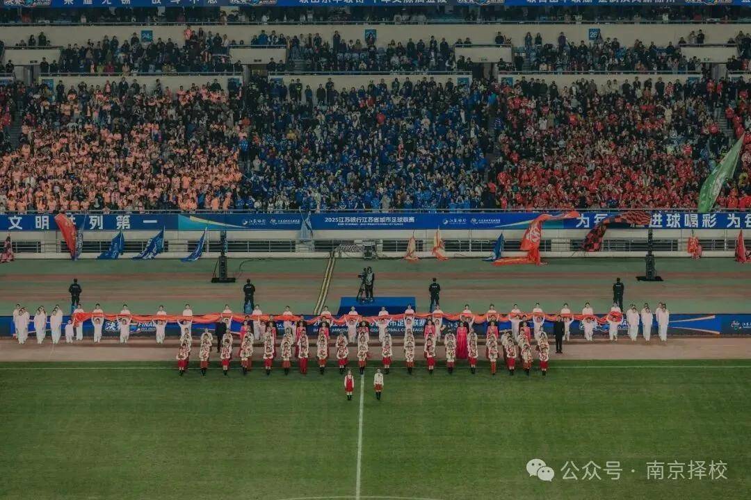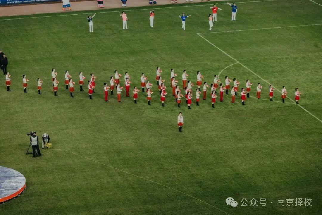在江苏省苏超总决赛的激烈角逐之际,一场温暖而铿锵的候场秀表演点亮了整个赛场。来自南京市鼓楼区天正小学天正童声合唱团的67名团员在谢婷老师带领下,身着团服站在万众瞩目的赛场上,伴随陈洛萱同学的领唱,以清澈而充满力量的合唱深情演绎《我和我的祖国》,为这场体育盛会注入了感人至深的文化内涵与精神共鸣。