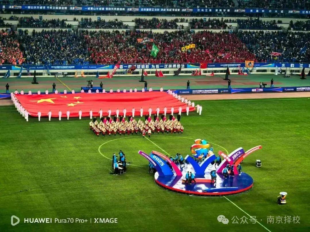 五星红旗迎风飘扬,天正童声合唱团以层层递进的情感表达,将歌曲中对祖国的挚爱与自豪抒发得淋漓尽致。纯净的童声天籁与现场六万人的合唱在奥体中心深情回响,激荡起全场观众内心深处的情感共振,体育竞技的热烈与家国情怀的厚重在此刻完美交融!