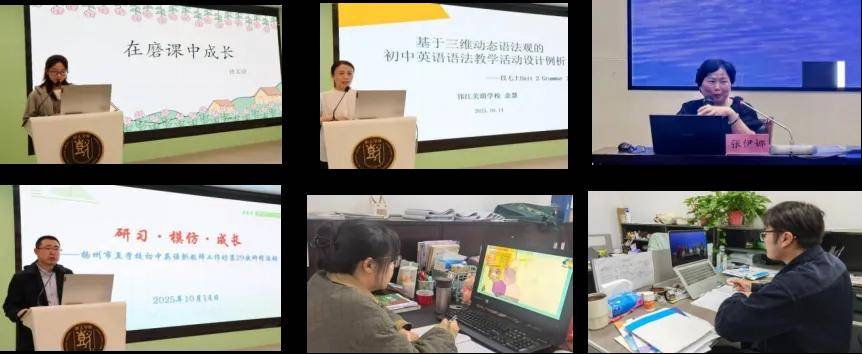 10月14日,市直学校初中英语新教师工作坊举办“研习·模仿·成长”主题研修,聚焦语法教学与教师专业成长。新教师许文静执教示范课,并以“在磨课中成长”为题分享心得。邗江区中小学英语名师工作室指导教师余慧、南京师范大学外国语学院张伊娜教授分别开展专题讲座。工作坊领衔人常松老师勉励新教师以优秀同仁为榜样,明确目标、聚焦课堂、坚持反思、勇于实践,实现自我主动发展。10月30日,工作坊组织全体教师线上参与“问题链驱动下初中英语对话式阅读教学的实践探索”译林云教研活动,观摩苏州名师课例并聆听专家点评,为新教师开展问题链设计教学拓宽视野。