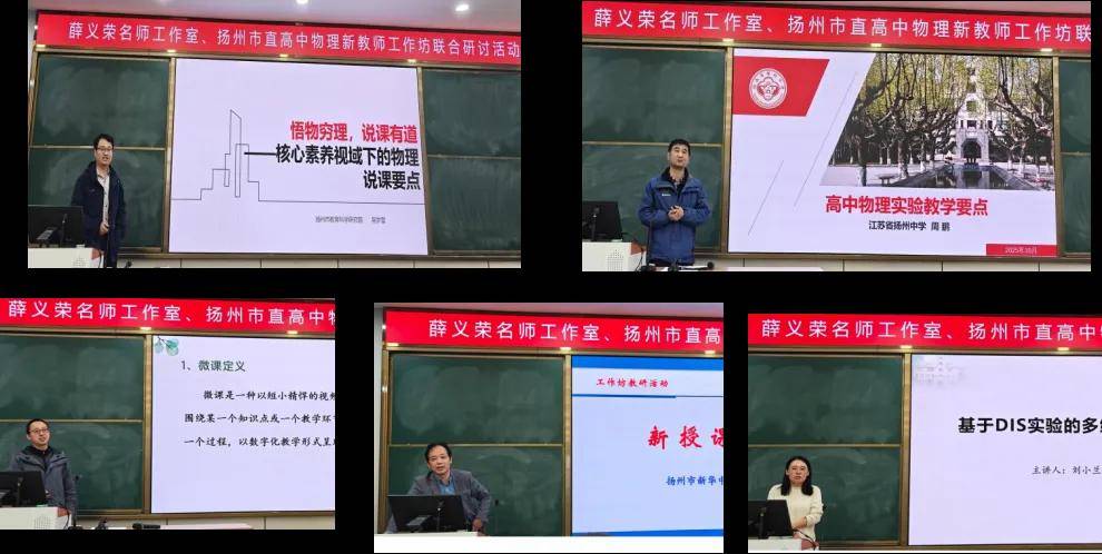 10月24日,高中物理名师薛义荣工作室与市直高中物理新教师工作坊在扬州中学举办联合研讨,聚焦“暑期微课评课总结汇报”,通过微课点评、专题讲座与互动研讨,助推新教师成长与物理教学高质量发展。