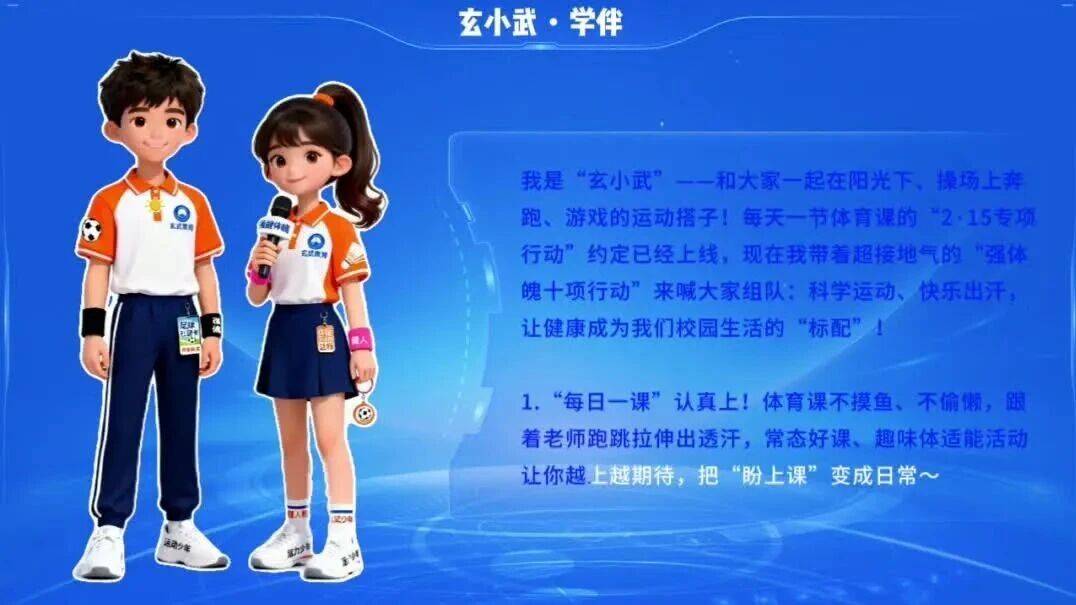 创新“玄小武数字运动伙伴”、社团俱乐部展能、阳光联赛闯关、足球小将追梦、体适能项目进阶、健康星章认定、家校运动同行、安全运动守护等机制激发学生内生动力。