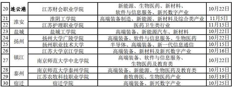 30场省级招聘会集中在江苏13个设区市,在江苏各大高校举办,每场招聘会聚焦不同的主题,毕业生可以根据自己的专业和就业意愿选择相应的招聘场次。比如,10月18日在苏州大学的这场招聘会以新能源、生物医药、高端纺织、新材料、高端装备制造产业为主;10月24日在南京中医药大学举办的招聘活动聚焦生物医药产业。省级招聘会一直持续到11月份,比如,11月5日淮阴工学院专场聚焦高端装备制造、新能源、新材料及综合类产业等。