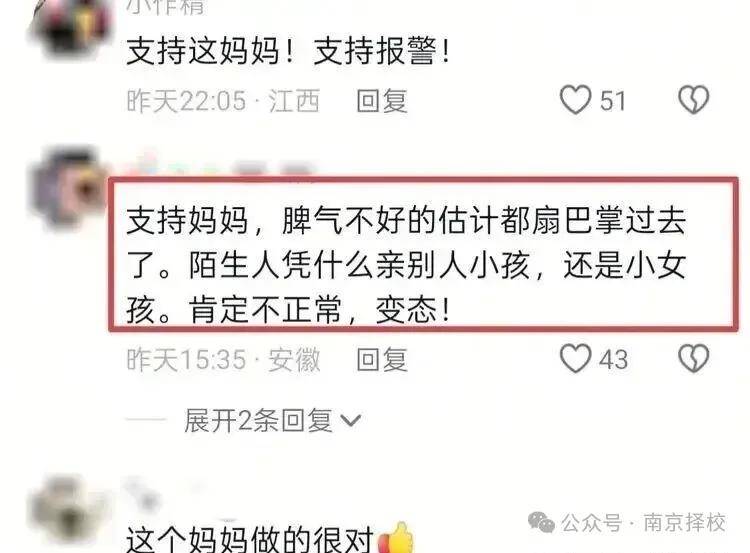 女孩家长愤怒:“你为什么亲她,我们又不认识你,你这是猥亵!报警。”男子则称,因为孩子太可爱,很喜欢所以亲一下,“她还这么小有什么关系,我们那里可以的。”