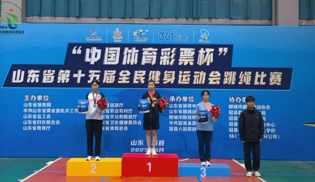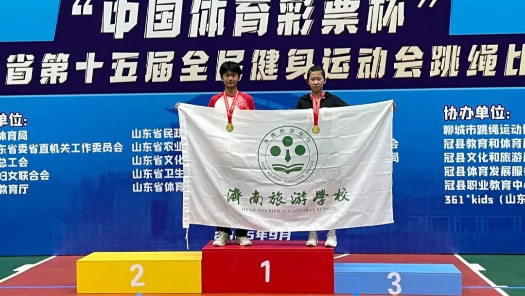 近日,“中国体育彩票杯”山东省第十五届全民健身运动会跳绳比赛在聊城冠县圆满落下帷幕。济南旅游学校跳绳队的同学代表济南市参赛,凭借出色的技巧、默契的配合和顽强的拼搏精神,在众多参赛队伍中脱颖而出,斩获多项大奖,共获得9金5银1铜15枚奖牌,为济南市和学校争得了荣誉!