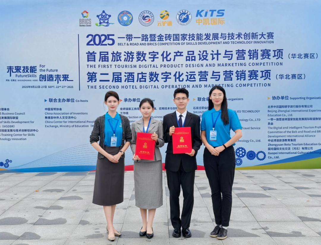 近日,2025一带一路暨金砖国家技能发展与技术创新大赛华北赛区赛事圆满落幕。济南旅游学校师生团队凭借扎实的专业素养与出色的临场表现,在激烈角逐中斩获两项重要奖项——2024级酒店服务五年贯通班学子摘得第二届酒店数字化运营与营销赛项华北赛区一等奖并晋级全国总决赛,导游服务专业团队荣获首届国际研学旅行课程设计与实施创新赛项华北赛区二等奖,充分彰显了学校在文旅职业教育领域的深厚积淀与创新活力。