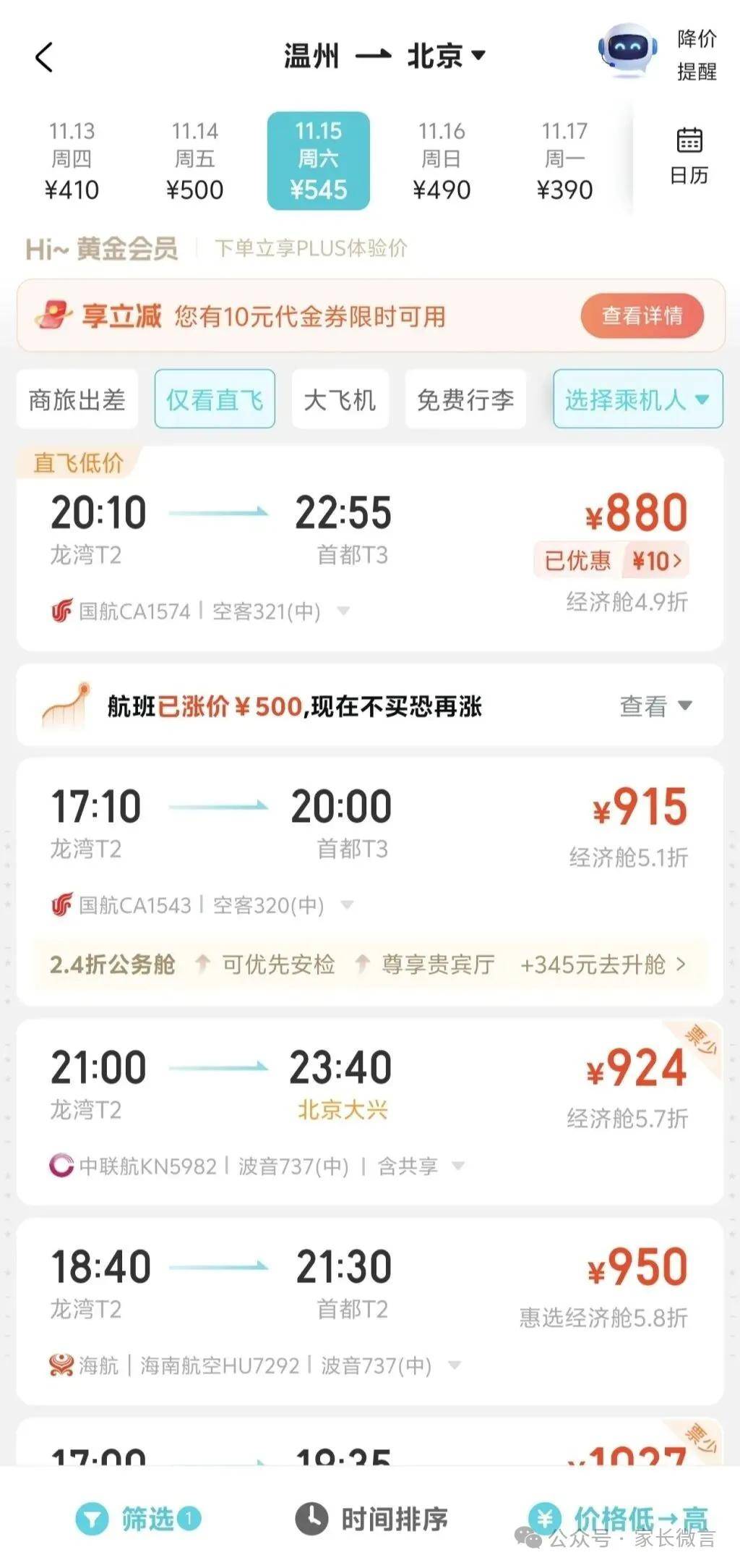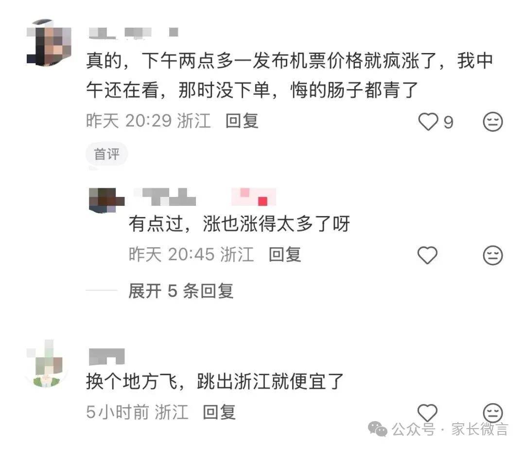 而与之相反,浙江多地宣布春秋假在11月放,随之而来的是放假地区的机票暴涨,让家长直呼受不了。