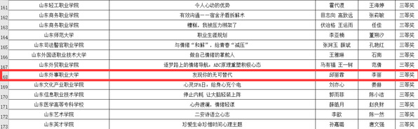 山东外事职业大学获省高校心理健康教育月多项荣誉,多项目获奖。