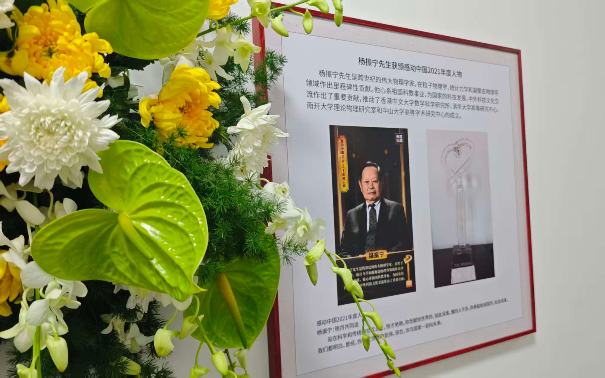 记者注意到,在“陈赛蒙斯”楼前也摆放有鲜花,该楼落成于2005年,这是杨振宁先生为解决高研中心学者的住宿难题,亲自联络挚友、著名数学家陈省身先生的弟子赛蒙斯捐建而成,并以“陈”字纪念陈省身先生。