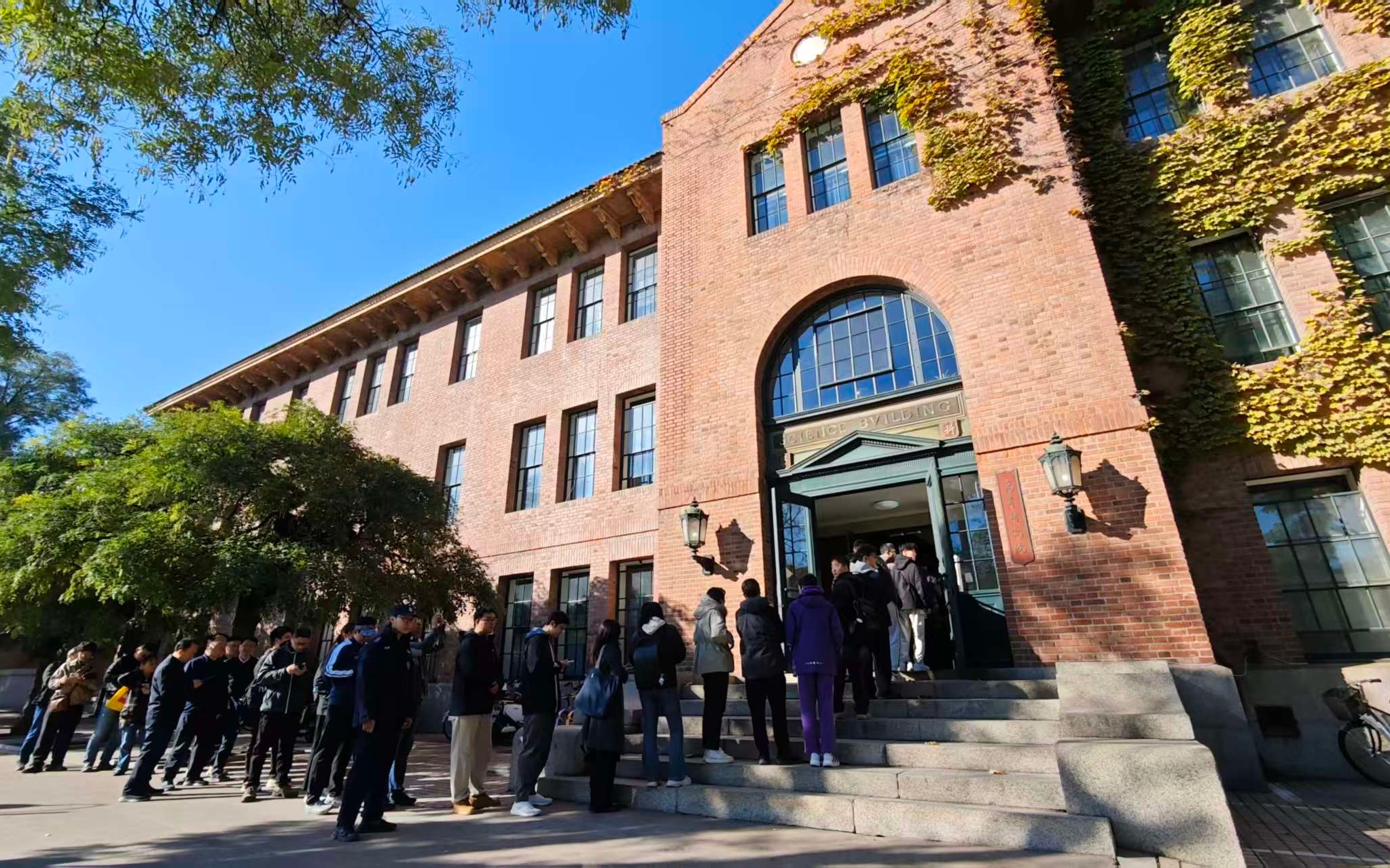 十月的清华园,天气微寒。19日早晨8点50分,在杨振宁先生缅怀室开放之前,已经有十几位同学和老师在科学馆门口排队等候,不少同学手中捧着鲜花。新京报记者现场了解到,专程前来吊唁杨先生的有清华在校学生、校友、社会人士,也有在物理学界深耕数十年的教授。
