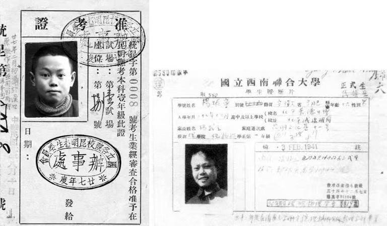 杨振宁西南联合大学准考证(左)、学籍卡(右)