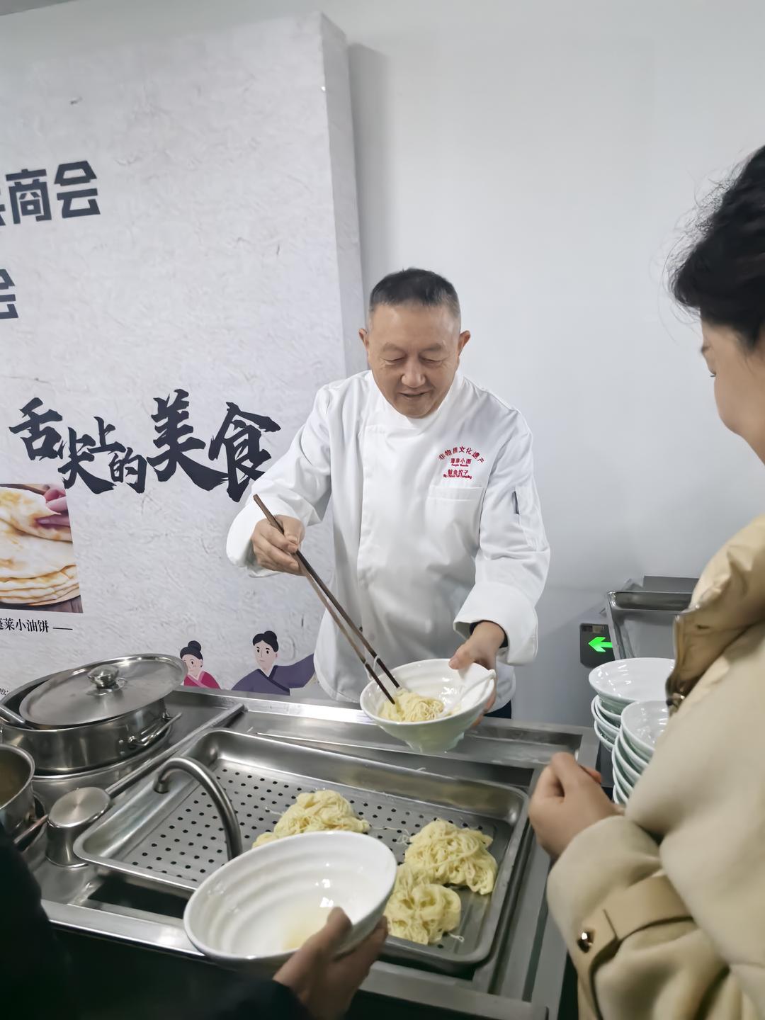 蓬莱商会在济南举办品鉴会,展示摔面、面鱼等非遗美食,数百老乡共叙乡情。
