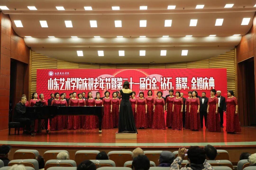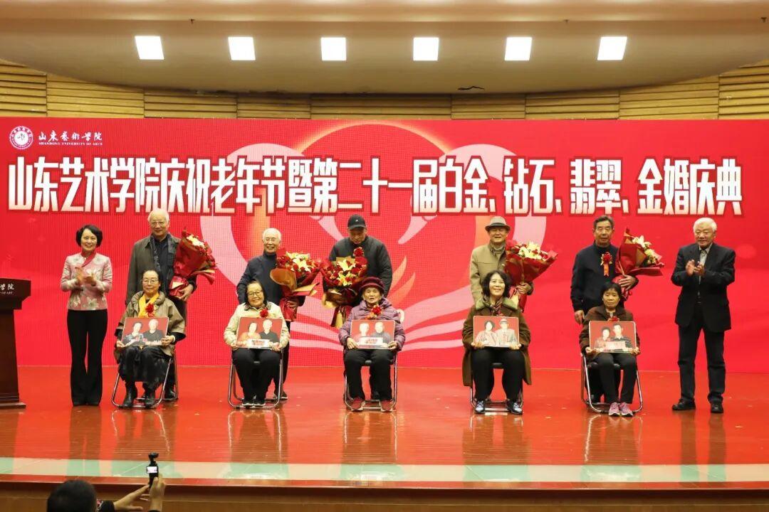 山东艺术学院举行老年节庆典,徐梅致辞,祝贺白金、钻石、翡翠、金婚伉俪,感谢老同志贡献。