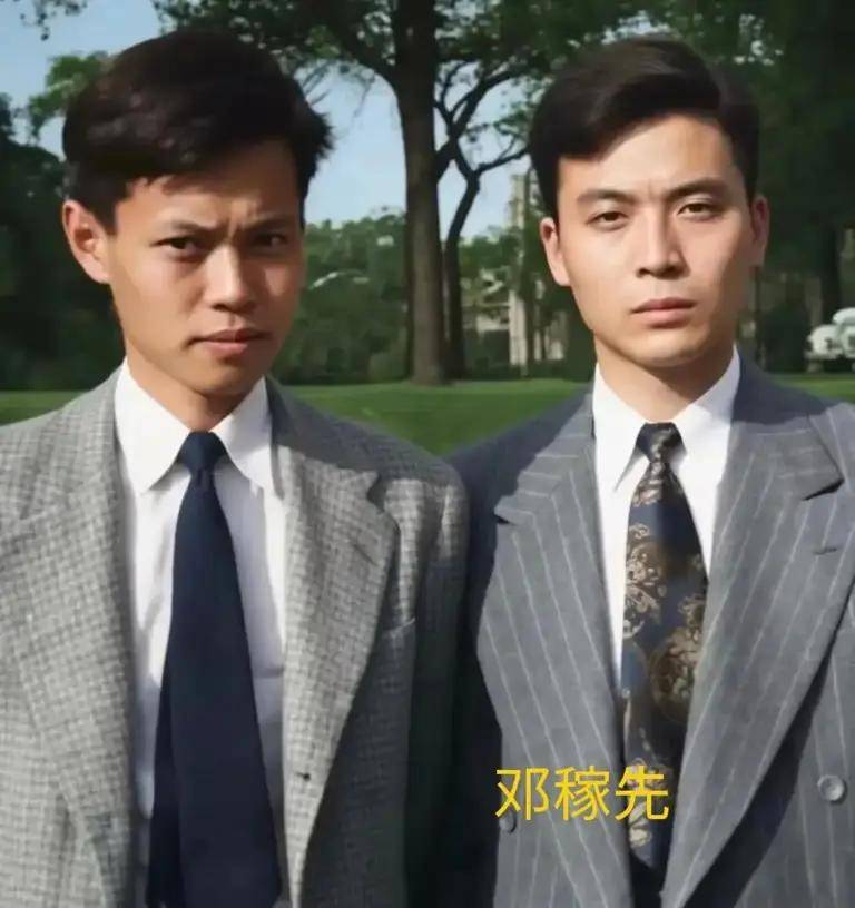 这是一张在芝加哥大学的合影,两人西装笔挺,年轻的他们,面容非常帅气。