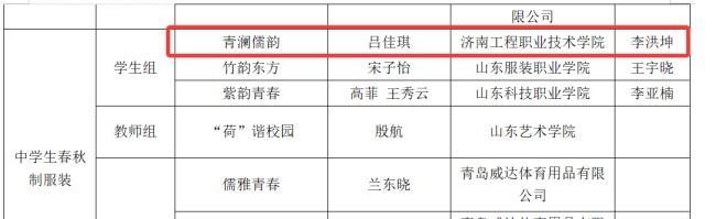 济南工程职业技术学院在省校服设计大赛中获奖,获一、二等奖项及优秀组织奖。