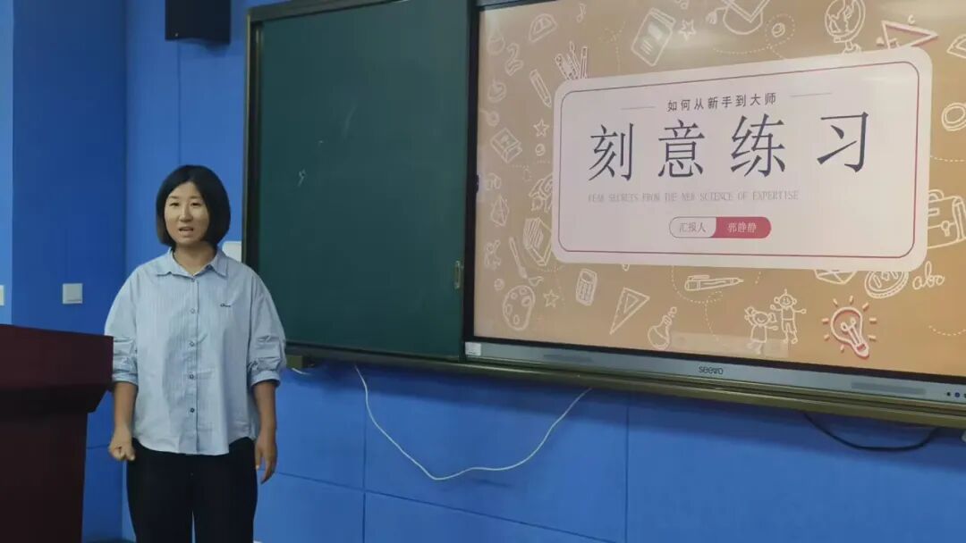 数学组张蕾老师作《刻意练习》与数学教学融合实践的分享,聚焦 “用‘刻意练习’重塑数学学习”。书中核心是破除天才神话,指出杰出源于长期有目的的刻意练习,其含明确目标、专注投入、即时反馈、走出舒适区四要素,还澄清 “一万小时定律”—— 关键在训练质量而非单纯时长。数学教学中,先分解子技能(如逻辑推理、符号运算),再设精准目标(如掌握三角形辅助线),借错题标准化整理与变式训练、“慢练” 拆解解题步骤,结合教师巡视、同伴互评、AI 批改等反馈,辅以反思日志培养元认知,最后提及实践反思与未来展望。