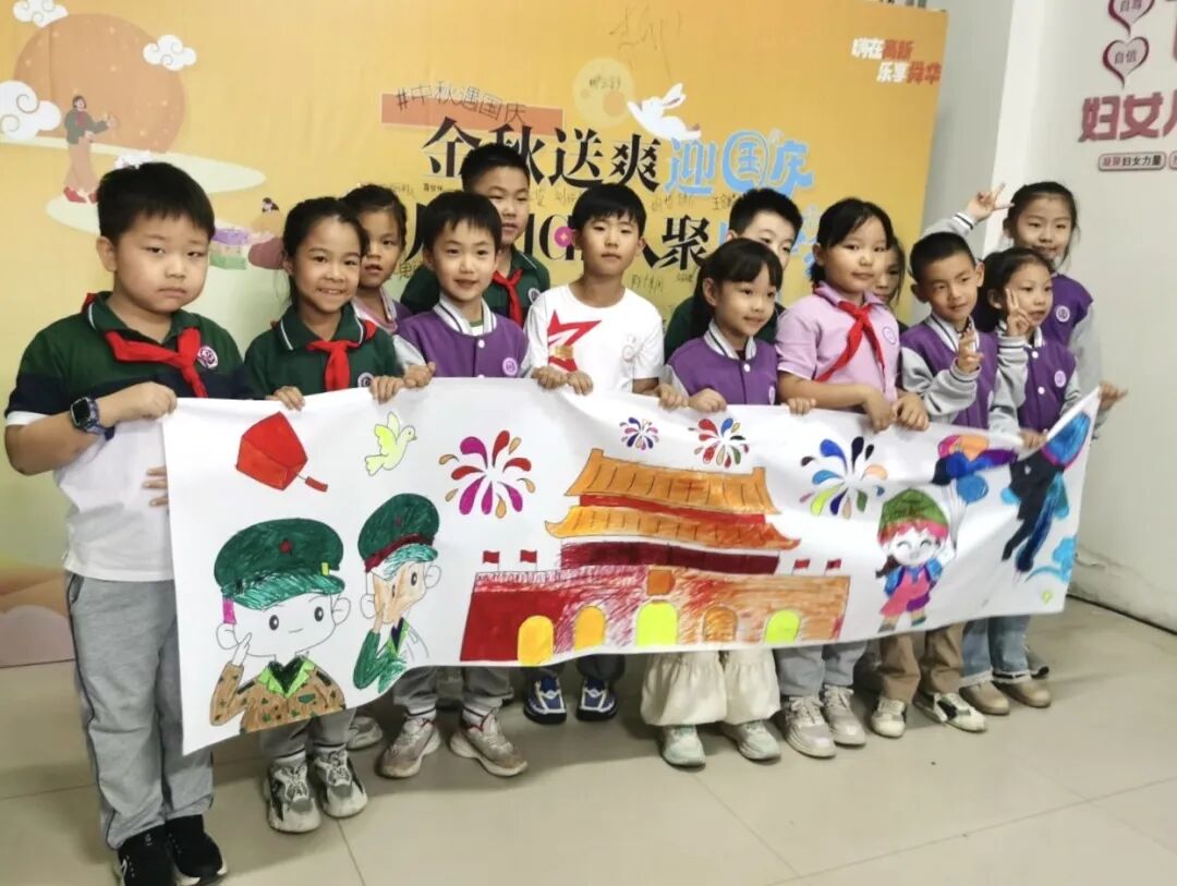 活动在庄严而活泼的氛围中拉开帷幕。首先进行的是“迎国庆,庆中秋”集体画作创作。学生们围坐在一幅长长的画卷旁,手拿七彩画笔,个个神情专注。他们用稚嫩却充满想象的笔触,描绘出飘扬的五星红旗、壮丽的天安门、绽放的烟花以及自己心中繁荣富强的祖国形象。一幅色彩斑斓、童心熠熠的巨作在合作中缓缓呈现,凝聚了孩子们对祖国母亲最真挚的祝福。