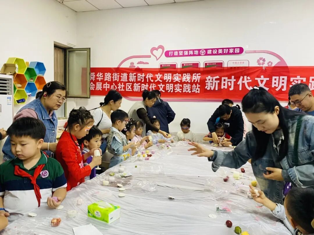 学生参加国庆中秋社区活动,做月饼灯笼,绘画卷,亲子制灯,趣味游园,体验中华文化与团结快乐。