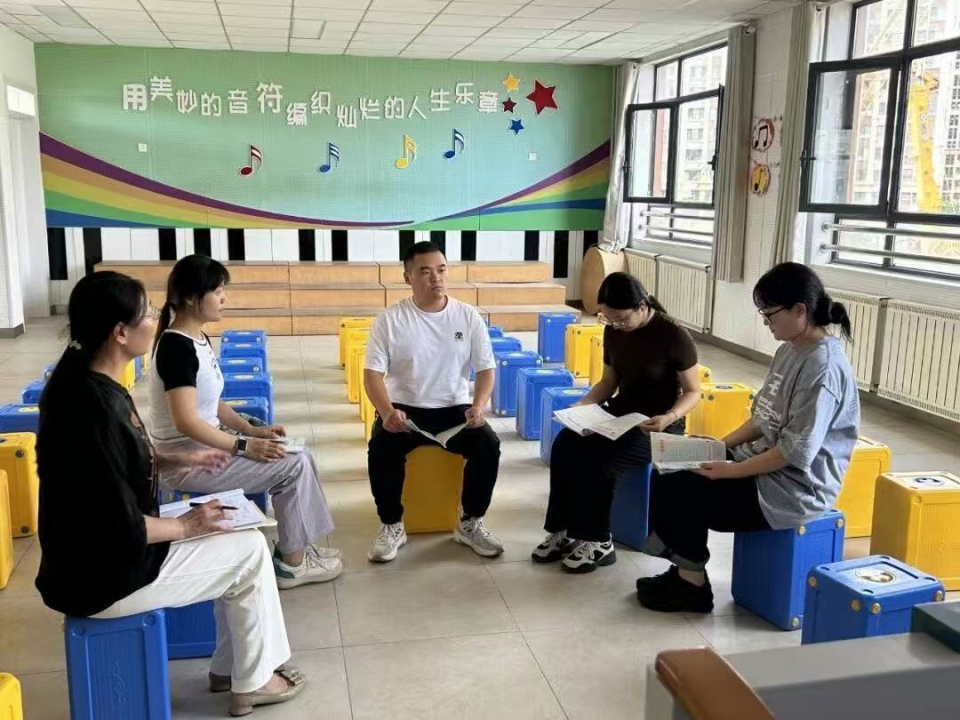 音乐教室内,教师们围坐共研,让五线谱上的音符在教研中谱写出音乐教学的新乐章,于充满韵律的艺术课堂幕后,以深耕之姿雕琢每一处声乐、乐理教学的细节。