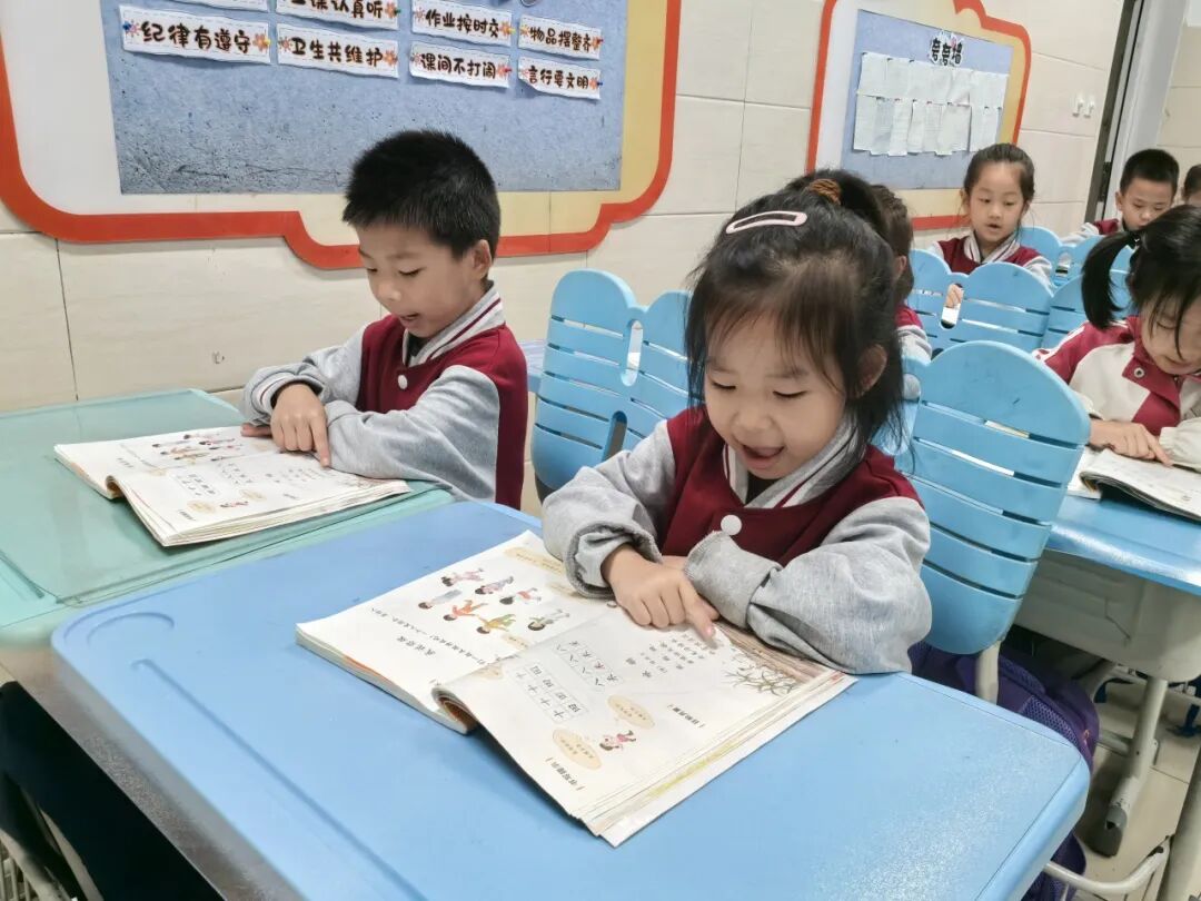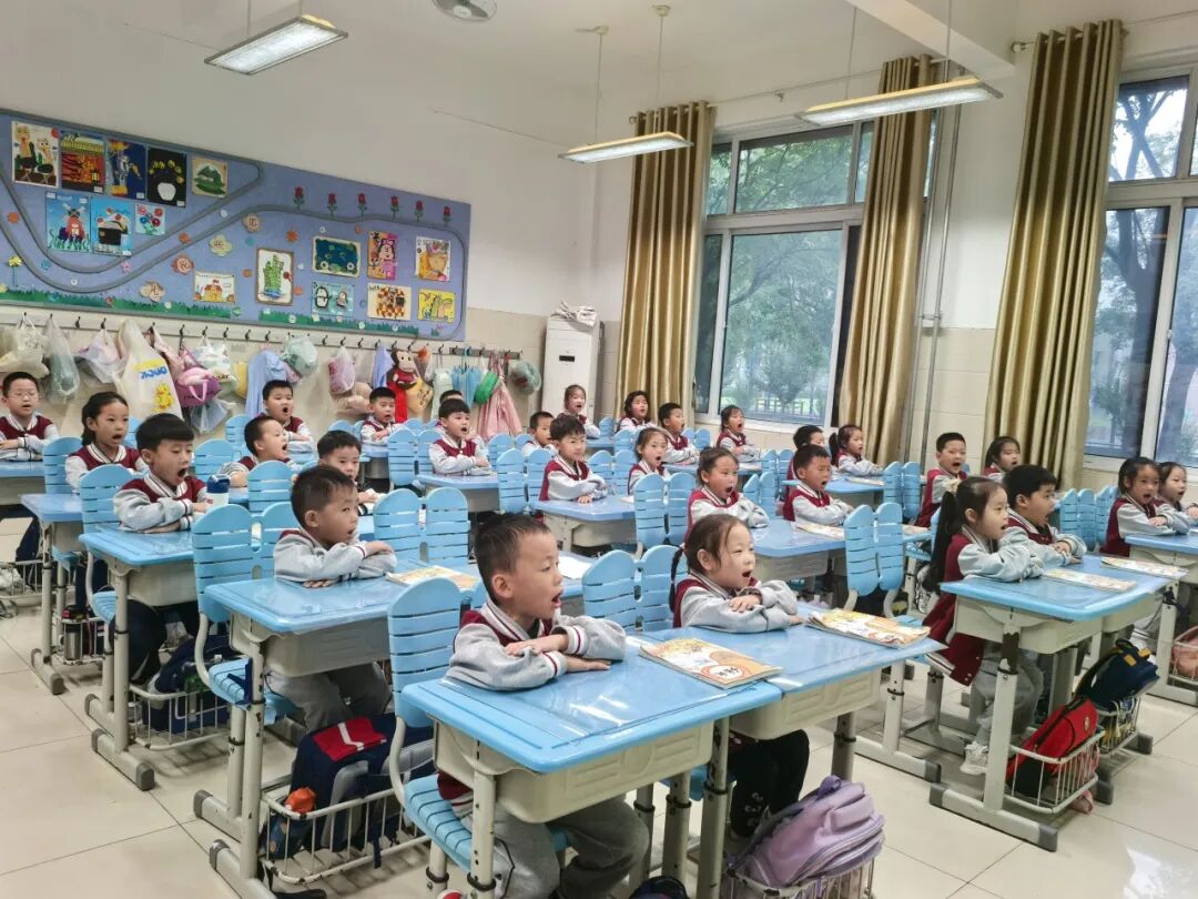 活动中,入学仅一个月的一年级 “小豆包” 成为亮点,他们聚焦 “课前准备三件宝”—— 书本、铅笔、思考能力展开进行展示。孩子们动作迅速,将课本按当天课程顺序叠放桌角,铅笔削好后放进笔袋摆在书本旁,随后双手平放桌面、挺直腰板,用清澈眼神注视前方,静静等待 “课堂开始”,整套动作连贯有序,尽显 “小标兵” 模样。