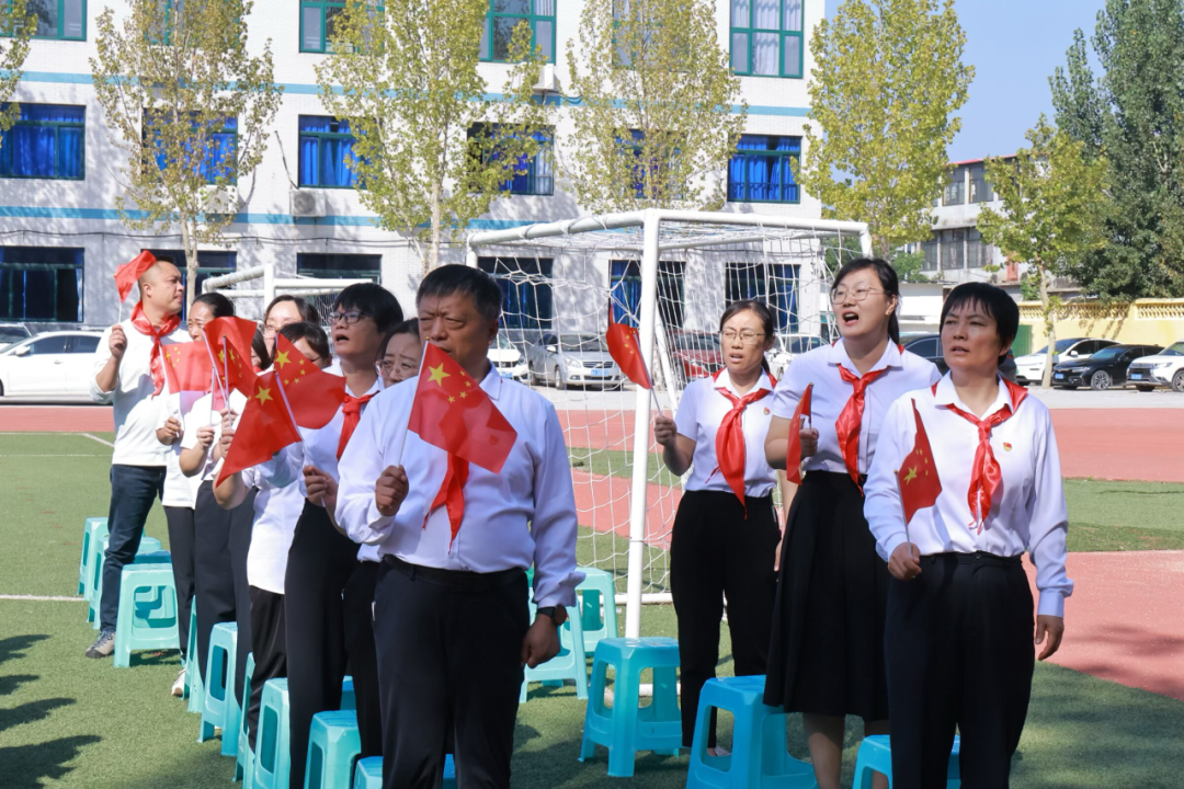 “五星红旗迎风飘扬,胜利歌声多么响亮......”活动尾声,全体师生整齐列队,手中挥动着鲜艳的国旗,齐声高唱《歌唱祖国》,将现场气氛推向最高潮。嘹亮的歌声响彻操场,与整齐有力的步伐共振,化作最赤诚的国庆礼赞。