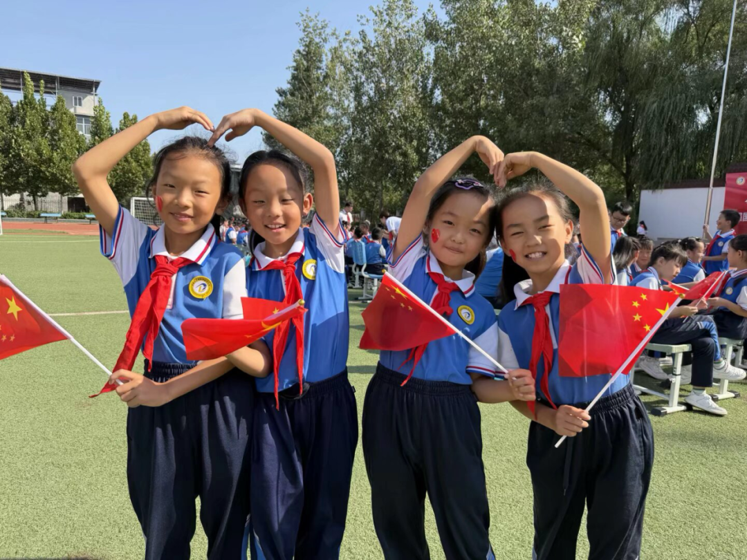刘姑店小学开展国庆活动 庆祝祖国76周年。师生举行队列、合唱等,用盘纸玫瑰拼国旗,举办书画展,与国旗合影,厚植爱国情。