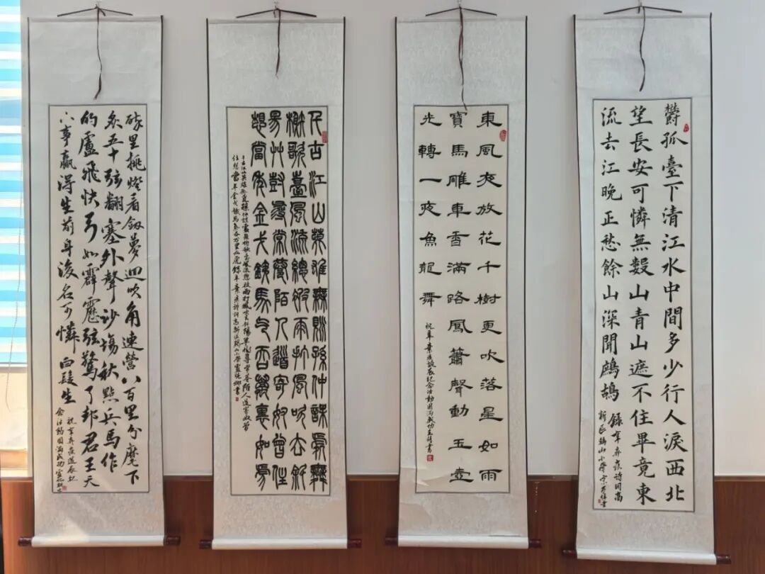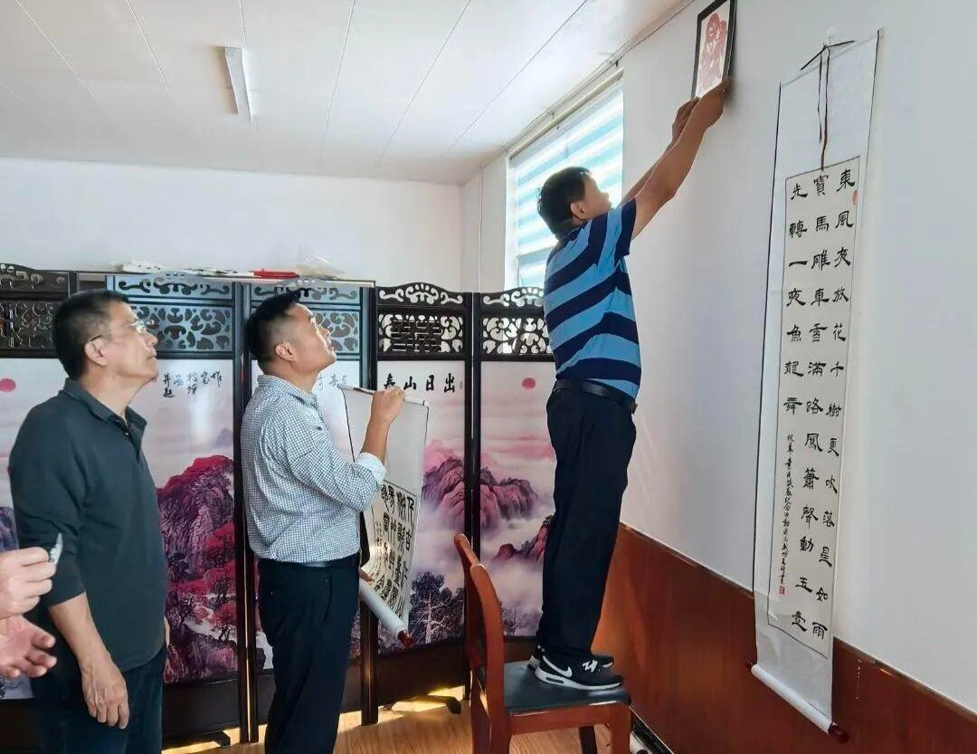 此次书画展是学校落实“三引导”行动理念的具体实践,筹备过程贯穿“红色引领、文化赋能、家校联动”思路。学校卢化新、毕德良、王晴、杜亮、刘克勇五位党员教师主动牵头组成专项筹备小组,从多环节精细推进:作品筛选阶段,从师生提交的百余幅书画作品中,挑选主题积极、技法扎实的作品,优先保留融入红色元素、展现校园生活或传统文化的创作;展区规划时,将展厅分为教师作品区与学生作品区,每幅作品旁标注作者及创作主题,方便社区居民理解;展板布置环节,采用统一简约风格,搭配红色装饰元素呼应“红色育人”理念,确保整体视觉协调。筹备小组还多次实地调整展品位置,力求呈现最佳展示效果,每一处细节都体现 “精益求精” 的态度。
