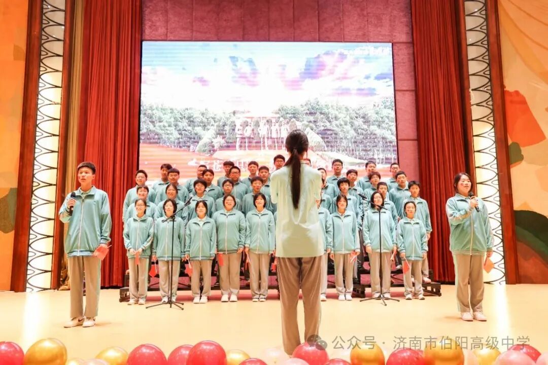 济南市伯阳高级中学举办唱红歌迎国庆合唱比赛,师生用歌声传递爱国情怀,展现青年精神风貌。