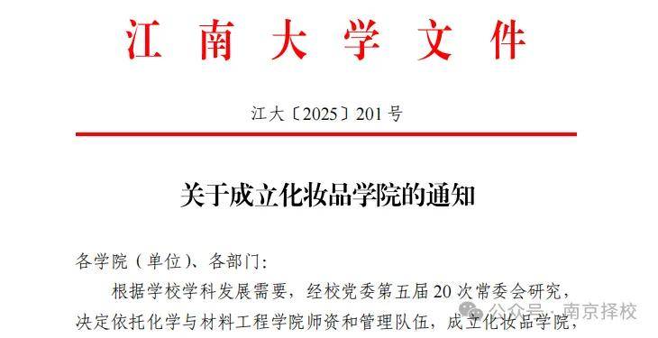 据“江南大学”消息,近日,该校依托化学与材料工程学院,正式成立化妆品学院。
