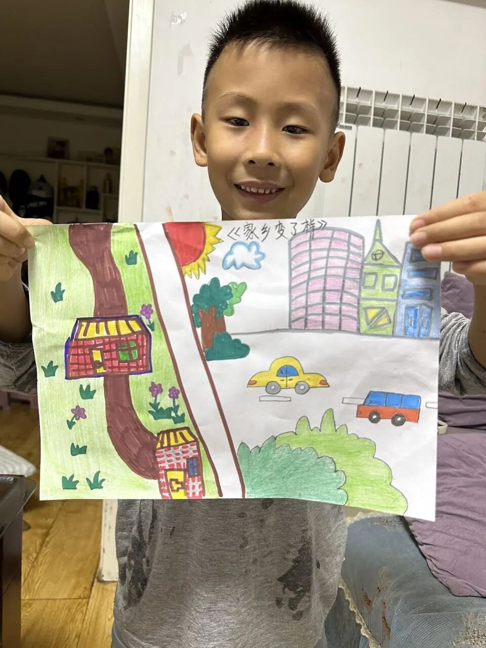 在孩子们的童画里,家乡的变化是具体的:是房子从“矮矮小小”到“高高大大”,是道路从“坑坑洼洼”到“平平整整”,是生活从“安安静静”到“热热闹闹”。他们用画笔告诉我们:家乡就像小朋友一样,也在一天天长大呢!