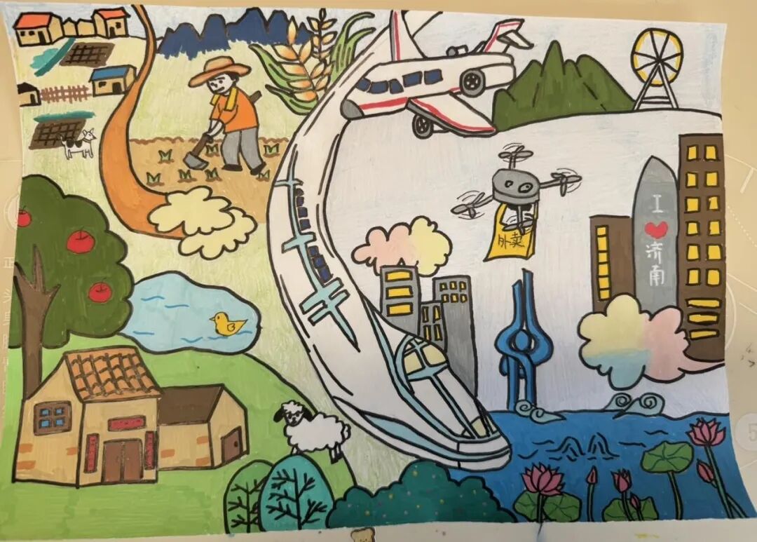 济南小学童绘家乡变化,对比旧时光和新生活。